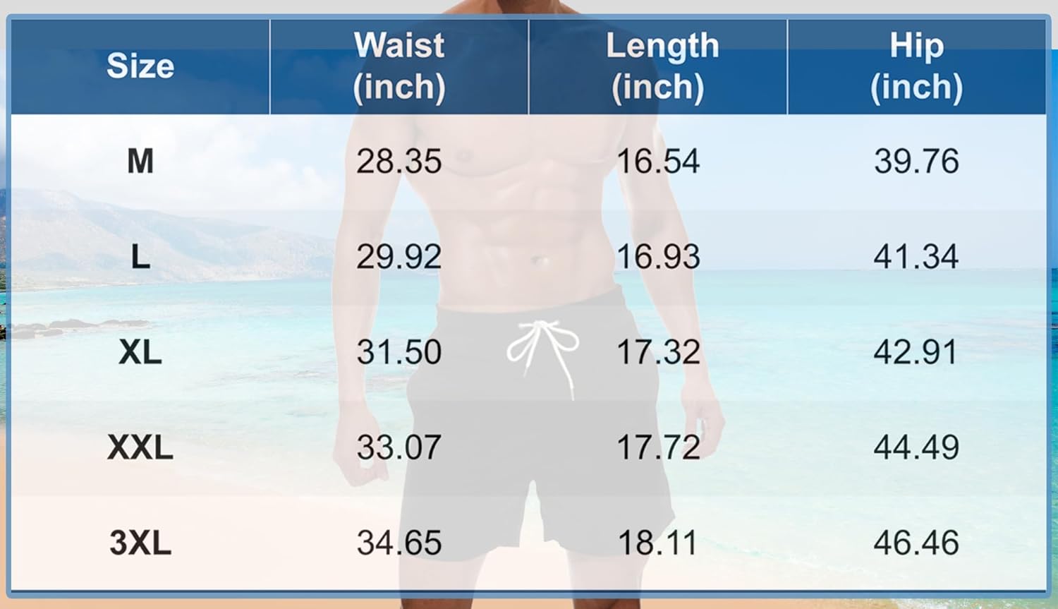 - 【Size Chart-Mens Swim Shorts】M(Waist27.55"),L(Waist 29.92"),XL(Waist 31.5"),XXL(Waist32.3"),3XL(Waist34.65")--Please refer to our SIZE CHART carefully before you order (Not Amazon size chart).