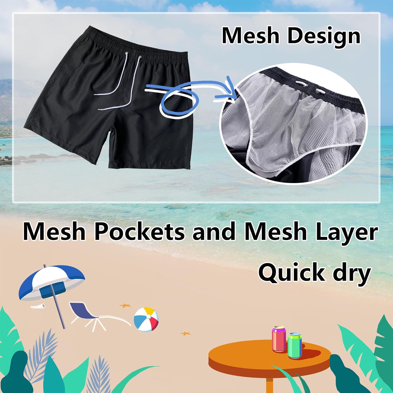 Sun Ora Men's Swim Trunks Quick Dry Swim Shorts,Mesh Layer Beach Swimming Board Shorts Casual Sports Lightweight Swimsuit with Mesh Pockets 5inch