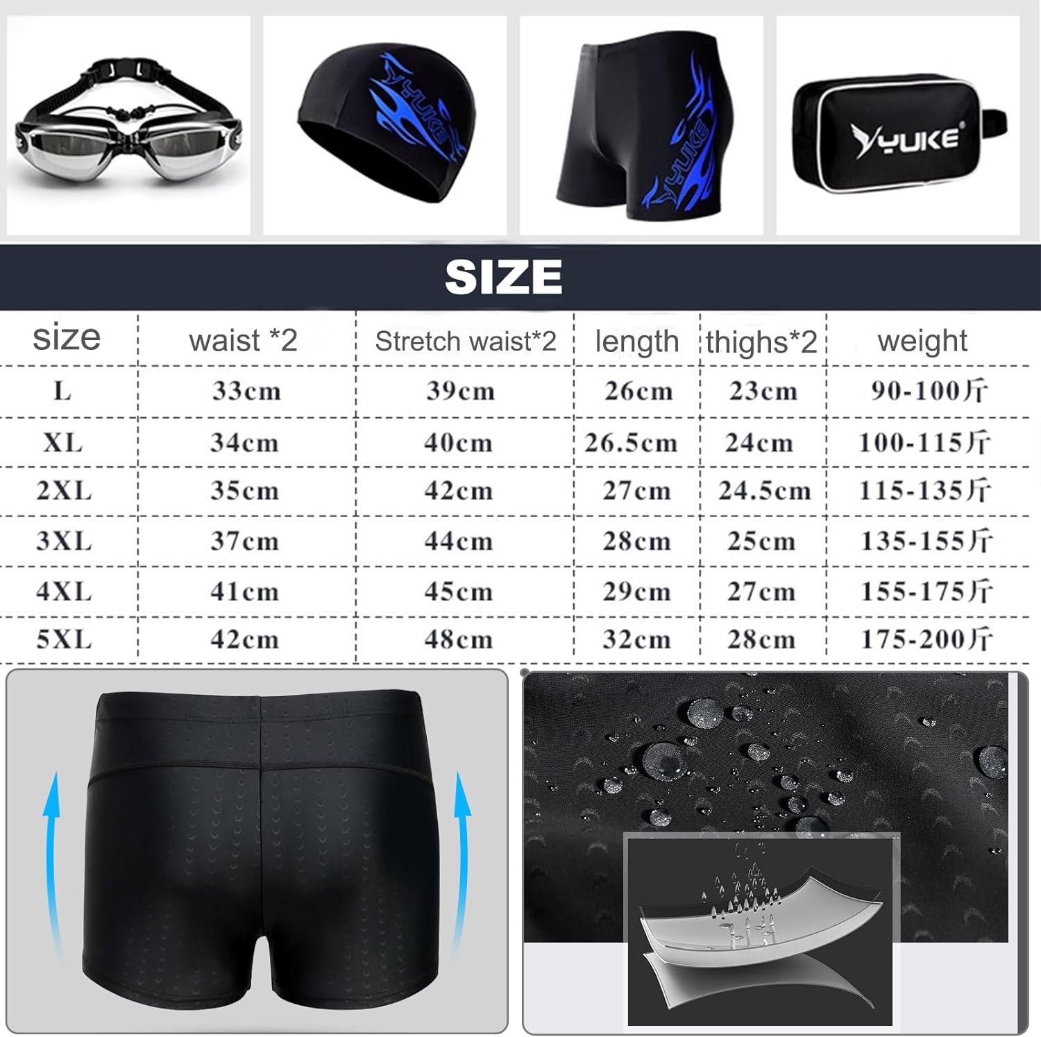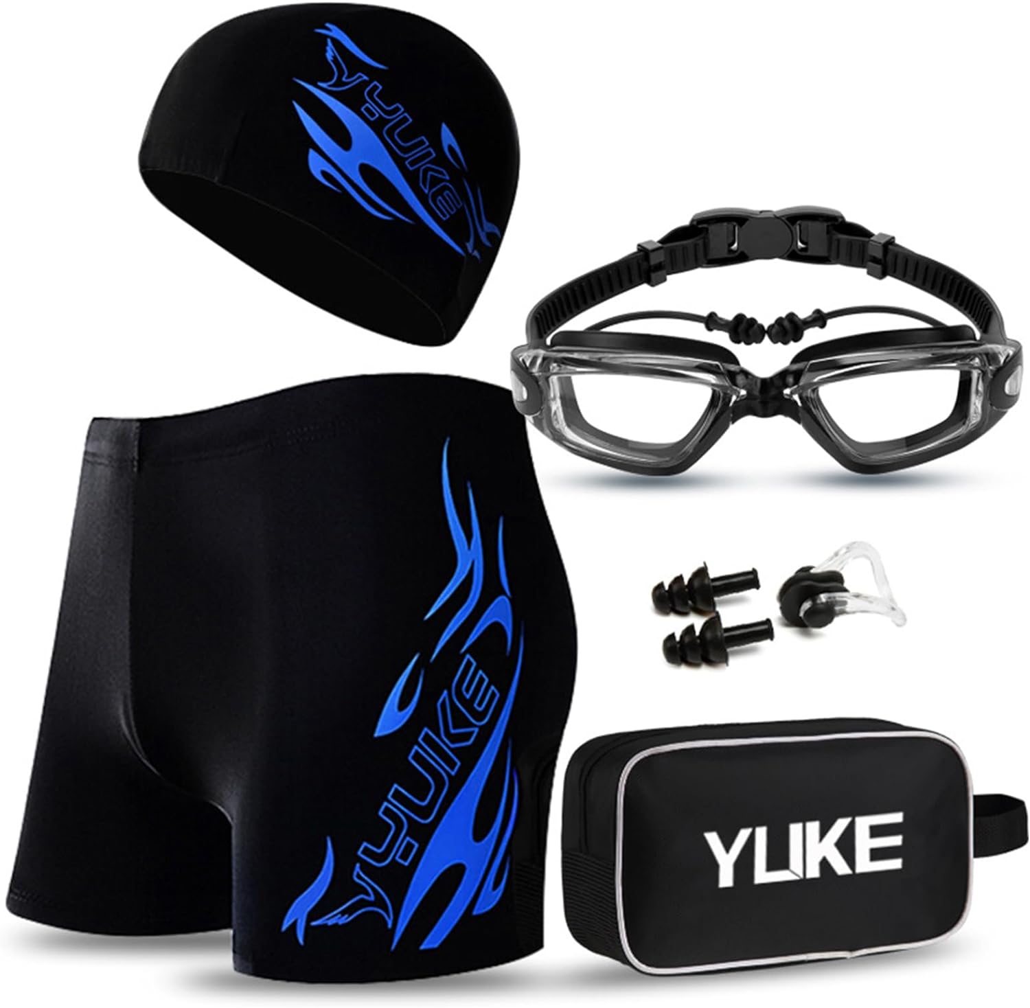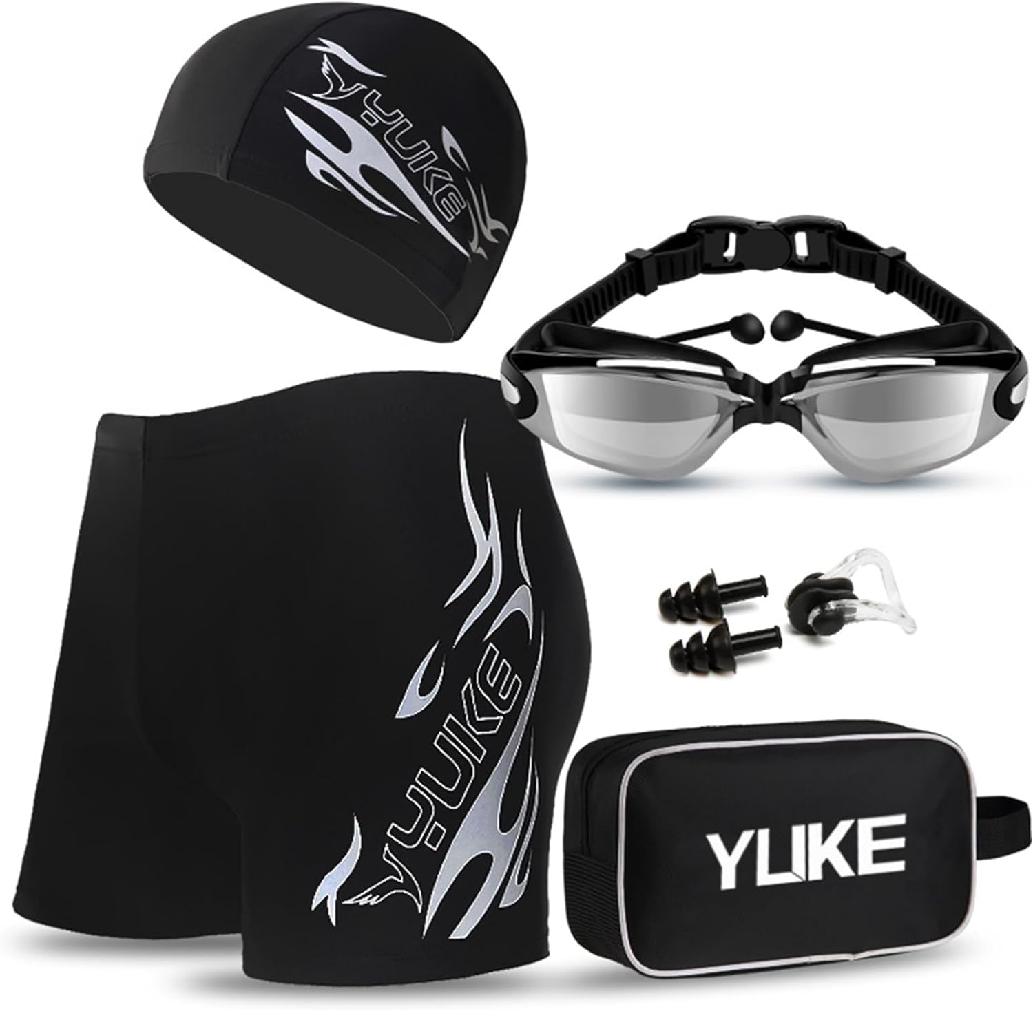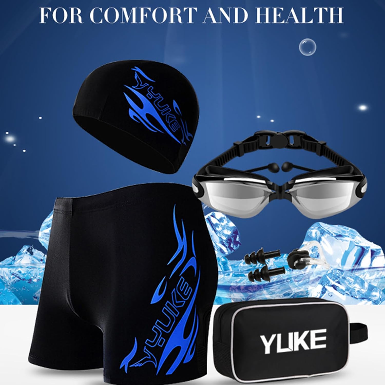 Men's Swimm Short Set,6Pcs Men Swimwear Set Swimming Trunks, Swim Goggles,Swim Cap,Ear Plugs,Nose Clip,Swim Bag, Adult Swim Beach Essentials for Summer Fun