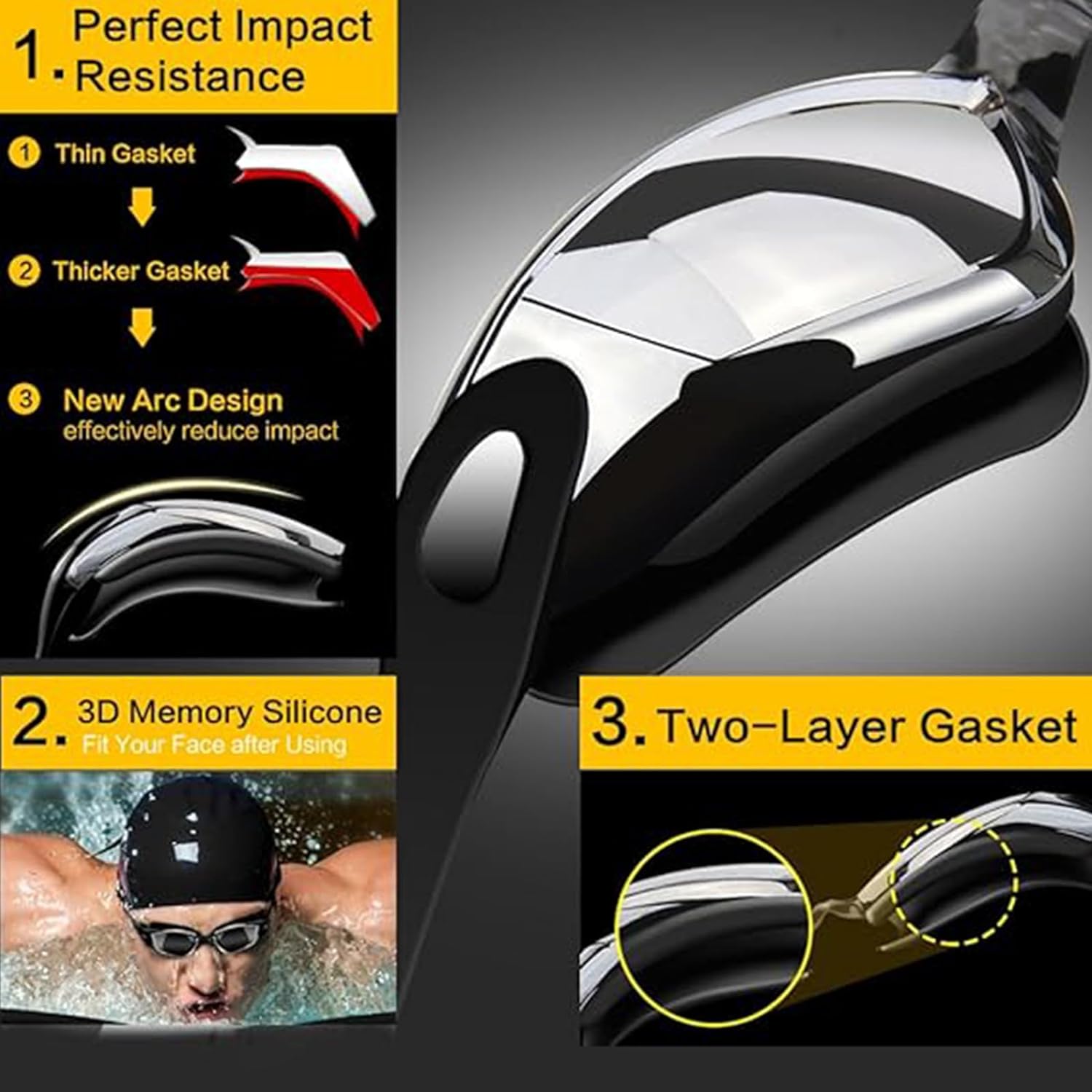 - 【NO LEAKING,FLEXIBLE & COMFORTABLE】Swim goggles have double -deck seal design and flexible silicone gasket frame construction to ensure a leak-proof seal. 3D ergonomic design fits your eye socket. Its well-designed buckle makes it easy to put on and take off swimming goggles.
