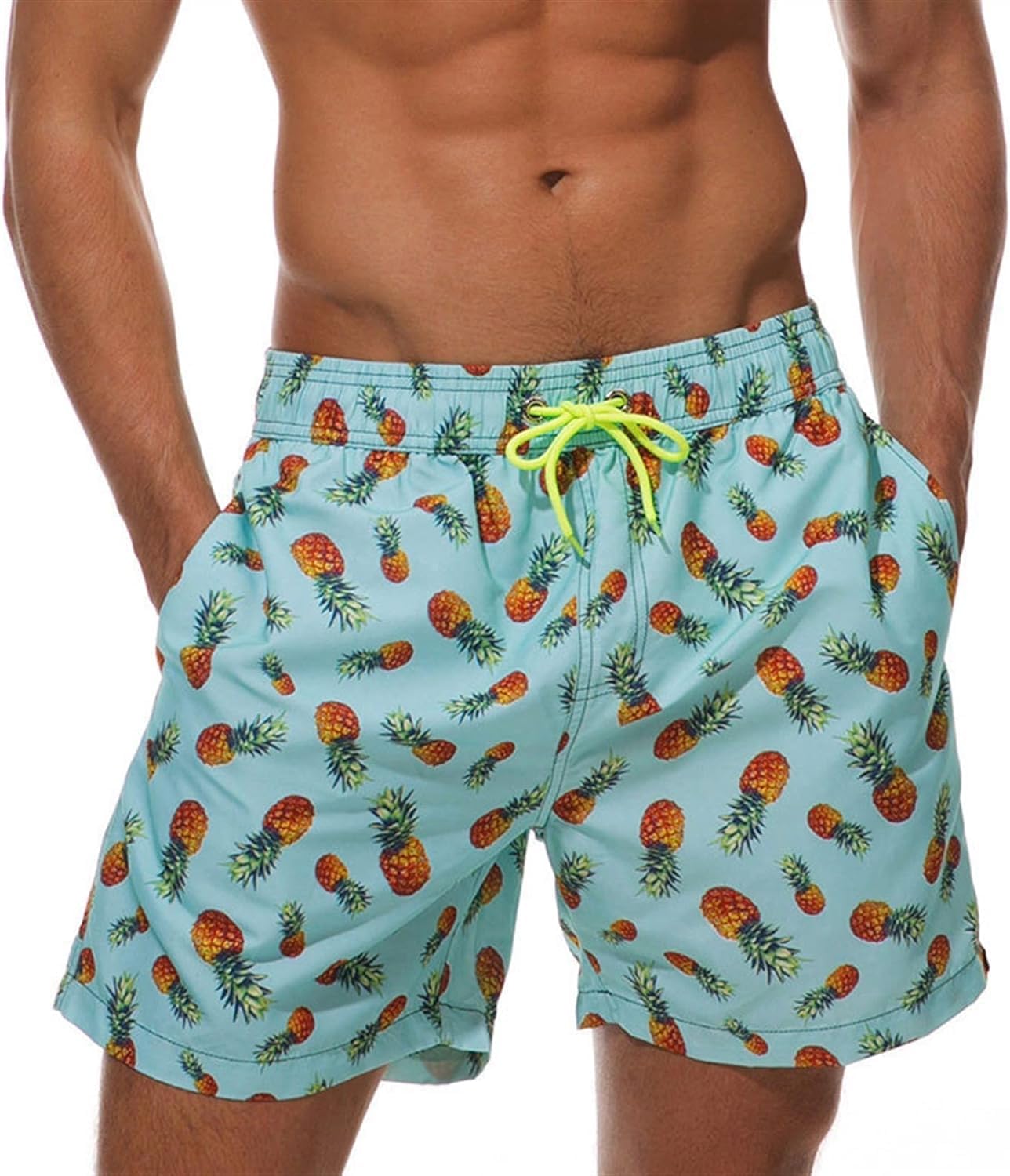 XTECH Men Swim Trunk, Breathable Mesh Cloth Quick Dry Drawstring Beach Shorts with Pockets for Surfing Fruit Watermelon Pineapple 3D Digital Printing