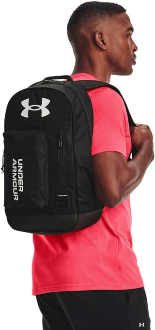 - UA Storm technology delivers an element-battling, highly water-repellent finish Padded back panel & adjustable, ergonomically shaped straps for more comfortable carry Soft-lined laptop sleeve—holds up to 15" MacBook Pro or similarly sized laptop Two water-repellent front valuables pockets to keep your stuff safe Welded hypalon modern molle webbing for additional attachment points Durable, abrasion-resistant bottom panel Top grab handle Dimensions When Full: TBD Volume: TBD 100% Polyester Imported