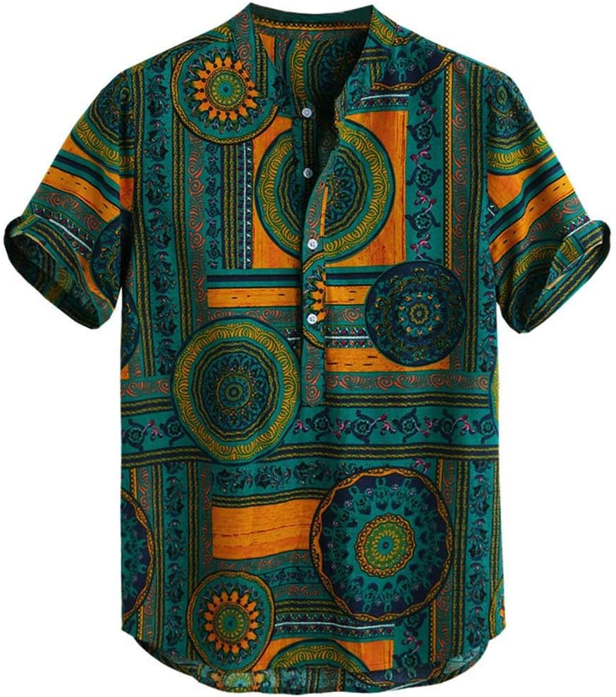 Starryflashing_men t-shirt Men Short Sleeve Print Shirt, Green - XL – BUYO