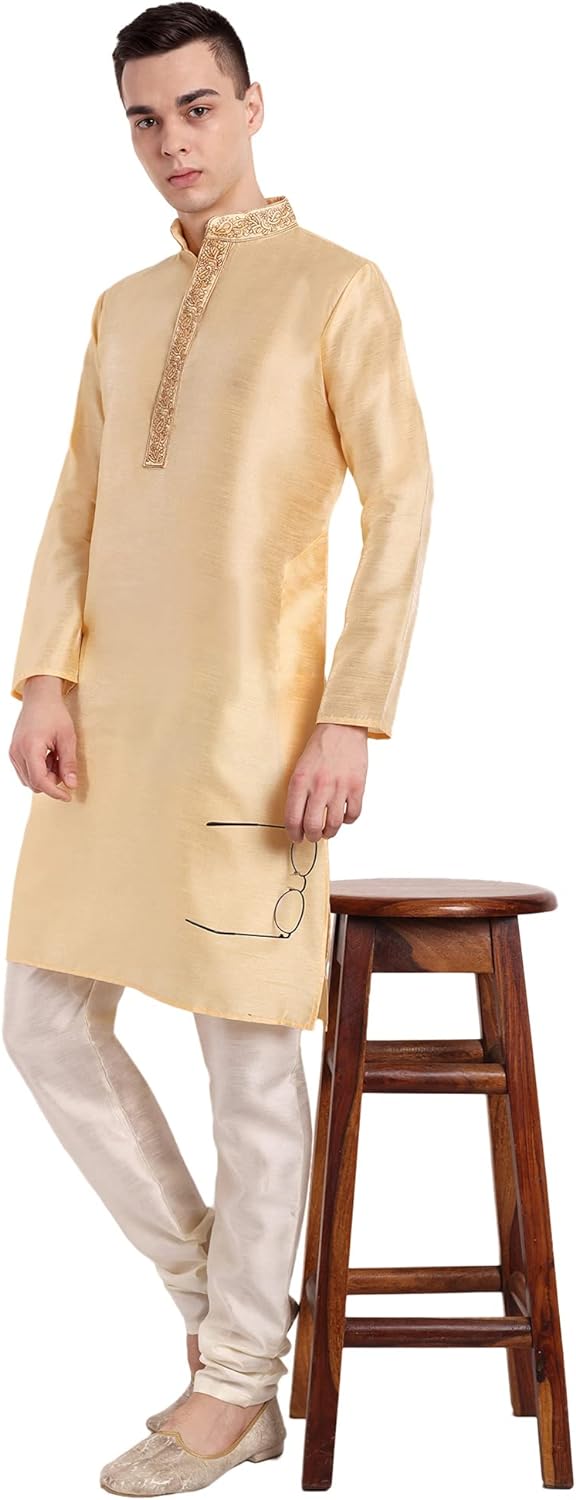 - HIGH QUALITY MATERIAL: Lightweight material gives this kurta pajama comfortable feel. Made from the finest handloom art silk fabric.