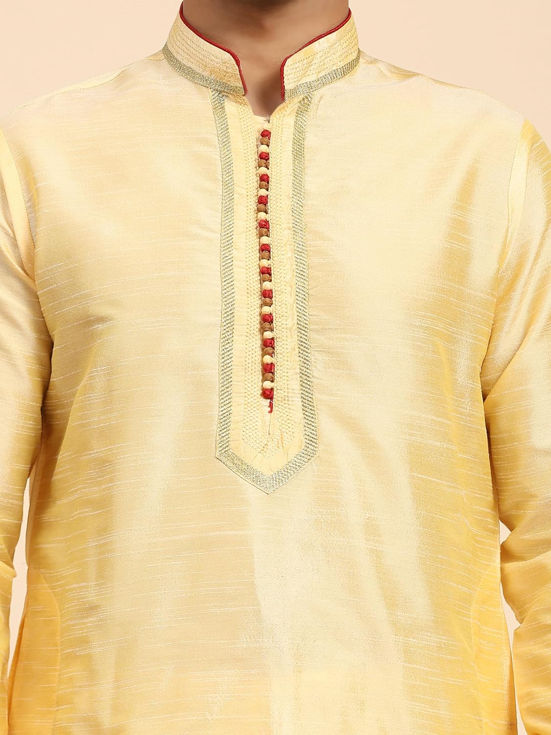 - HIGH QUALITY MATERIAL: Lightweight material gives this kurta pyjama a comfortable feel. Made from the finest handloom art silk fabric. Designs feature modern and innovative details that appeal to everyone.