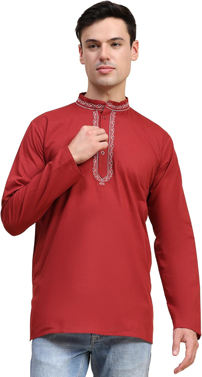 - COMFORTABLE FIT: Cotton and modern fit provide added comfort, ideal for warmer weather. Sizing is designed for a regular fit. We recommend ordering a size larger for a loose fit. Everyone looks good in this classic men's kurta shirt. Hip and timeless and flattering on any size, this button up fits in anywhere.