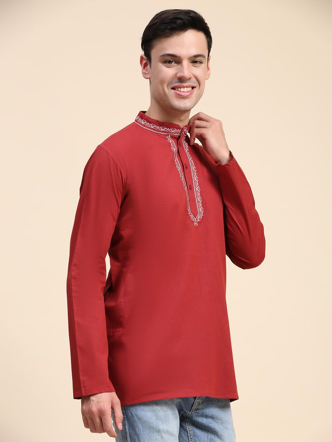 - HIGH QUALITY MATERIAL: Lightweight and breathable material gives this button down shirt kurta a soft, comfortable feel. Made from cotton fabric.