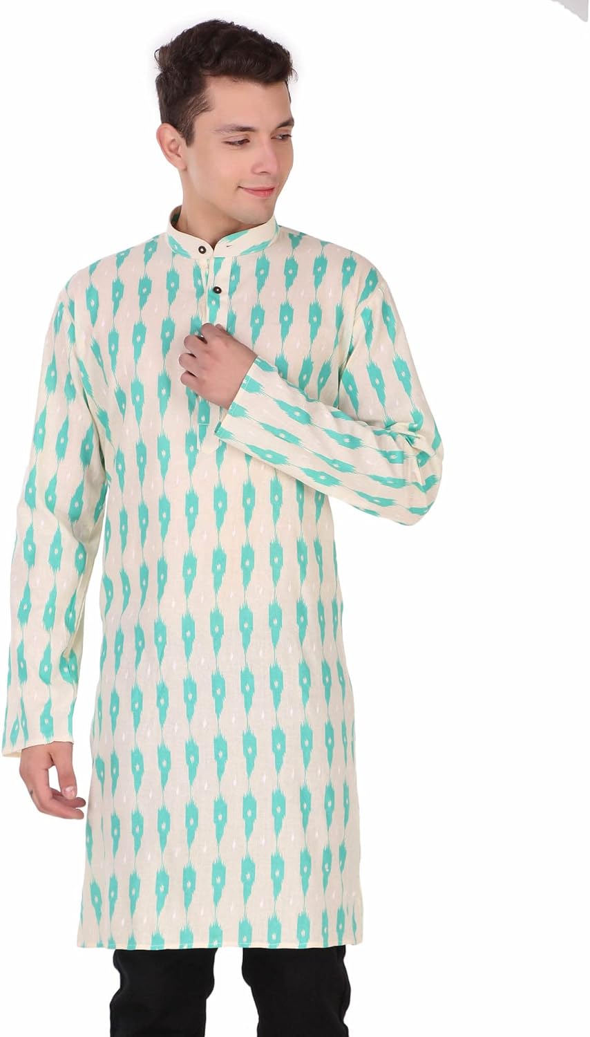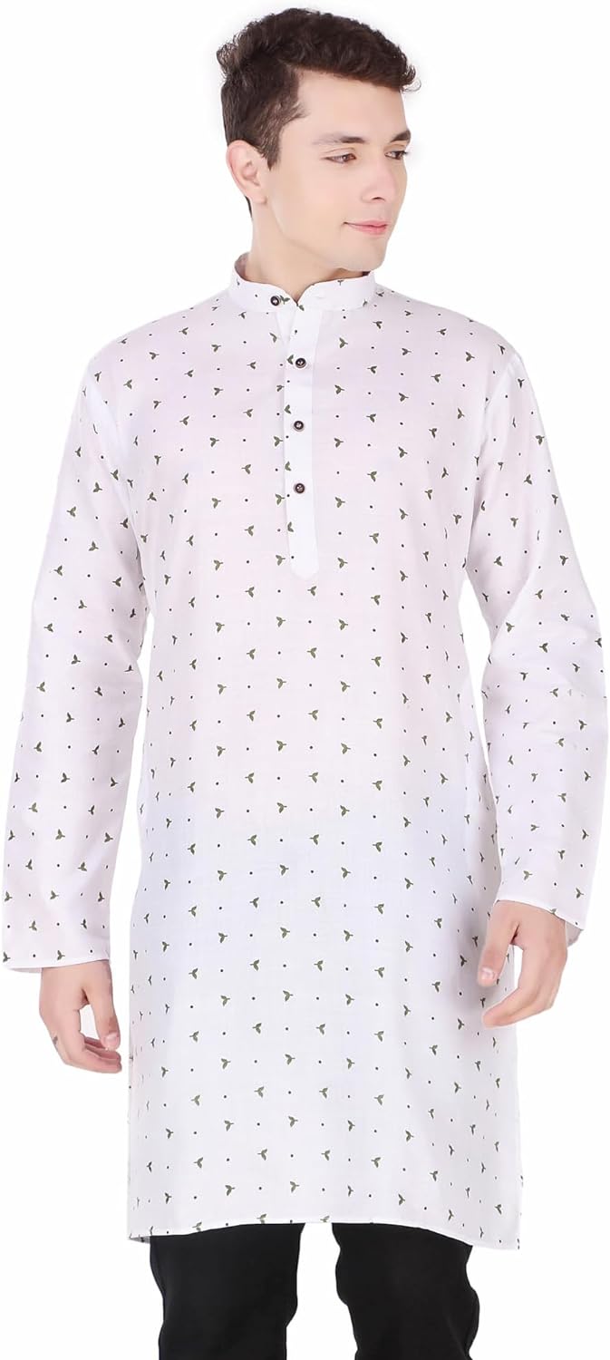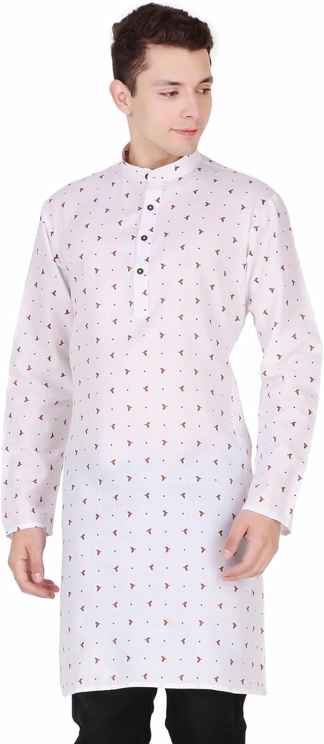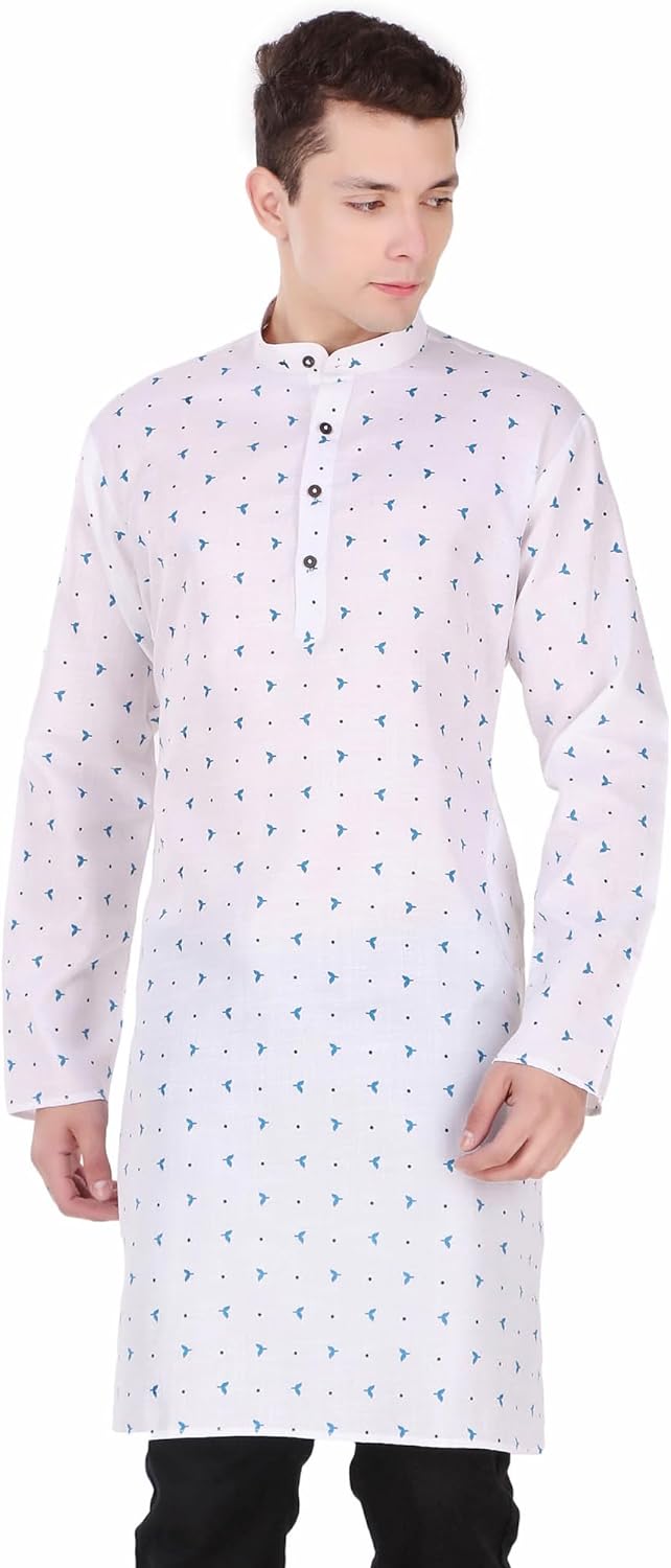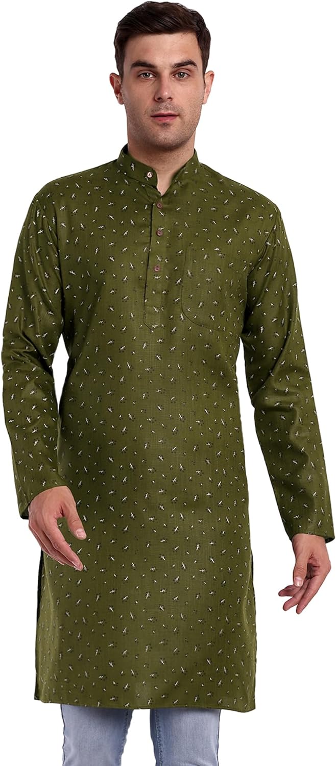 SKAVIJ Mens Cotton Long Sleeve Tunic Printed Kurta – BUYO