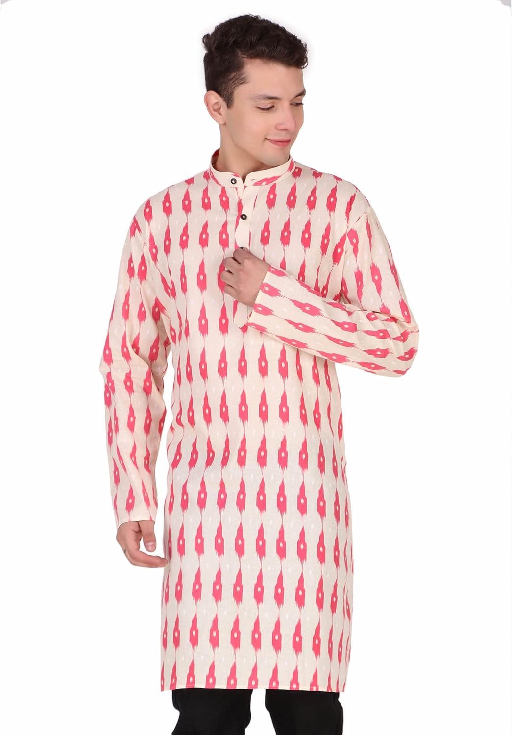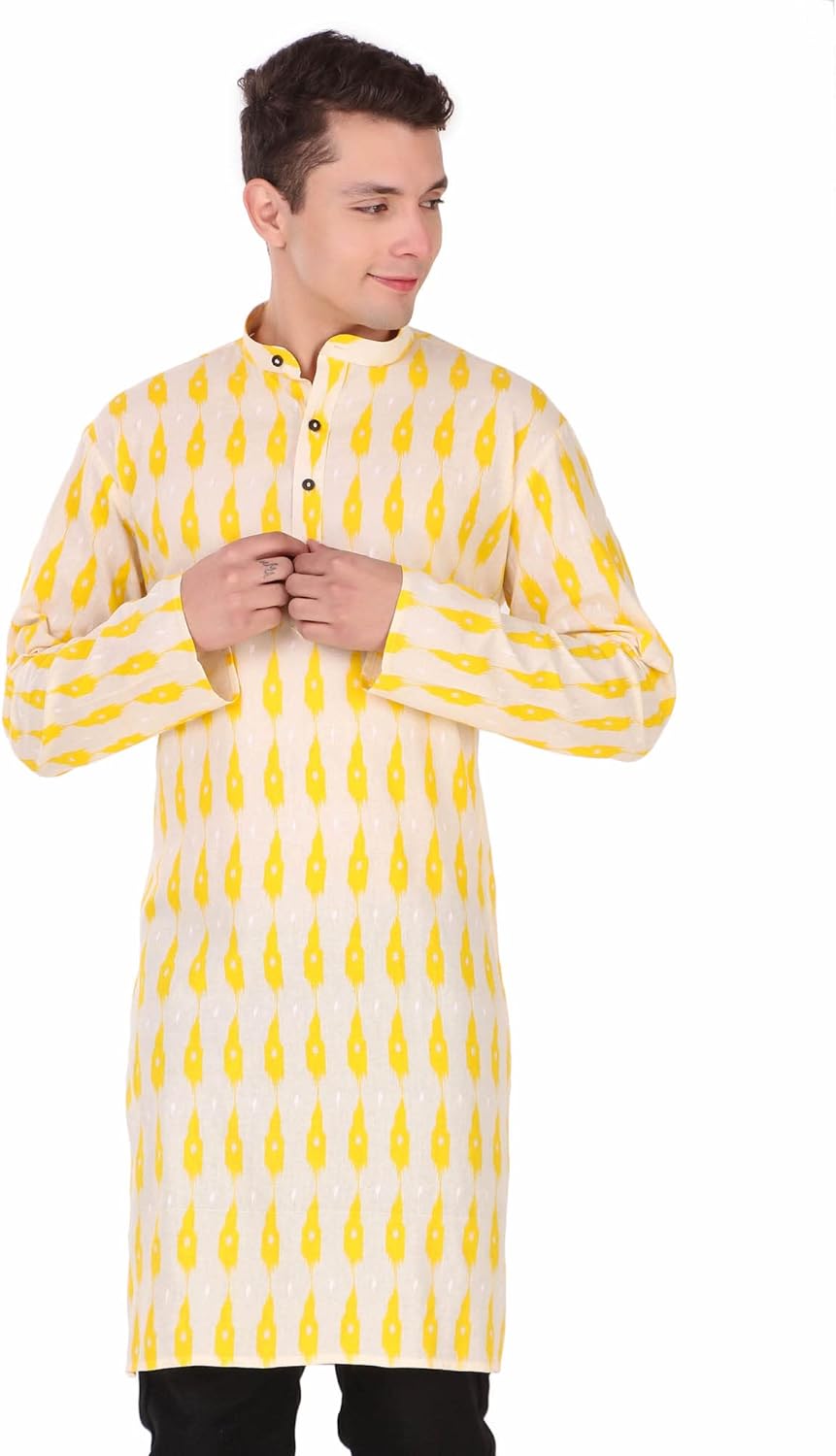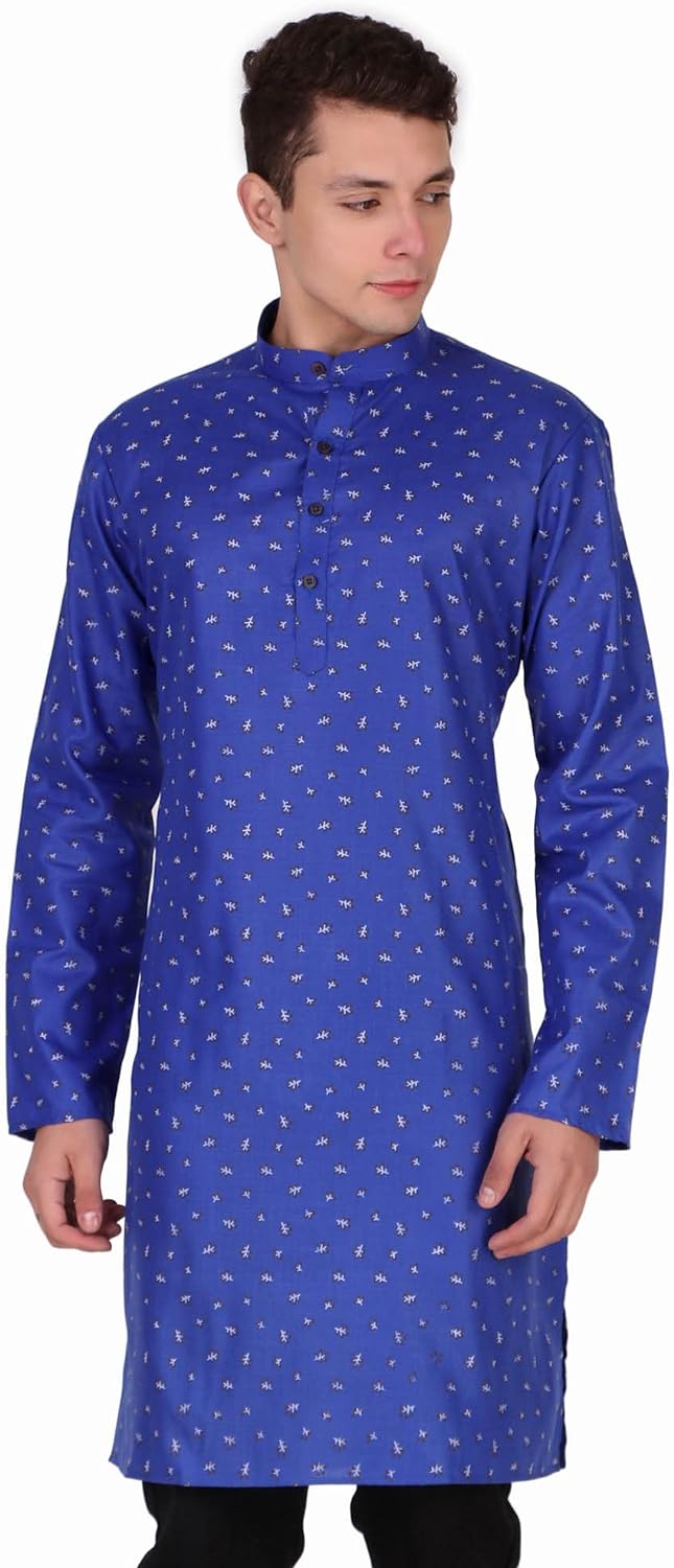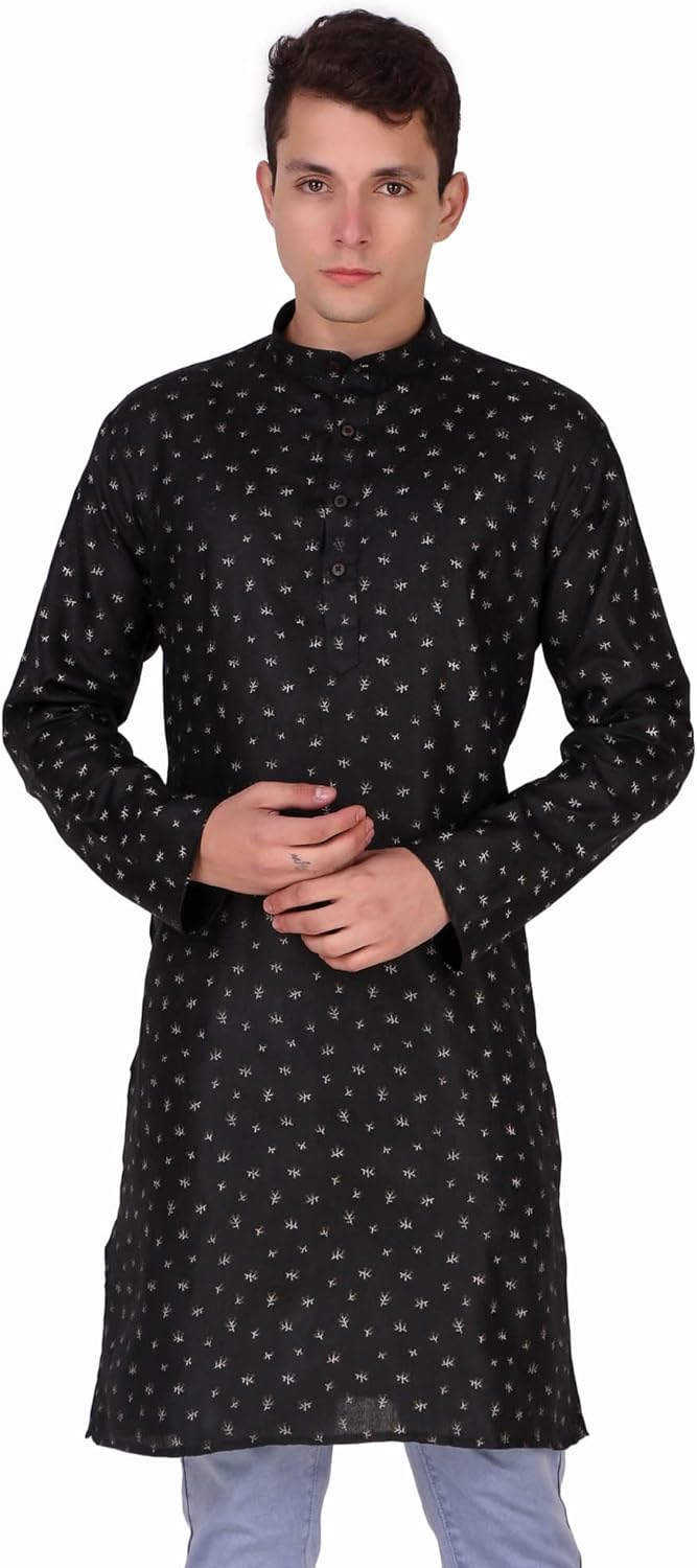 SKAVIJ Mens Cotton Long Sleeve Tunic Printed Kurta – BUYO
