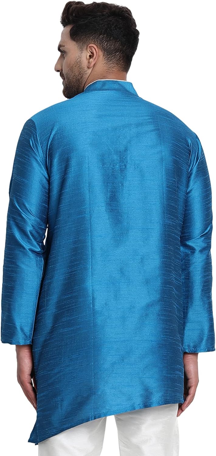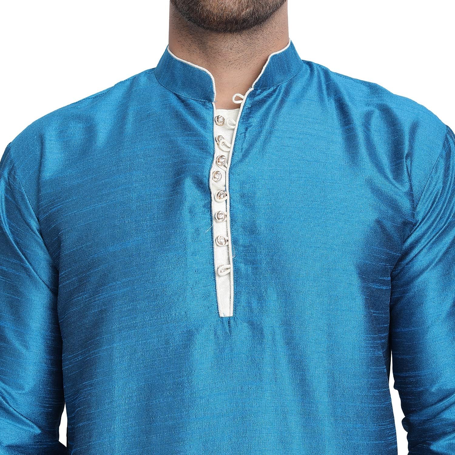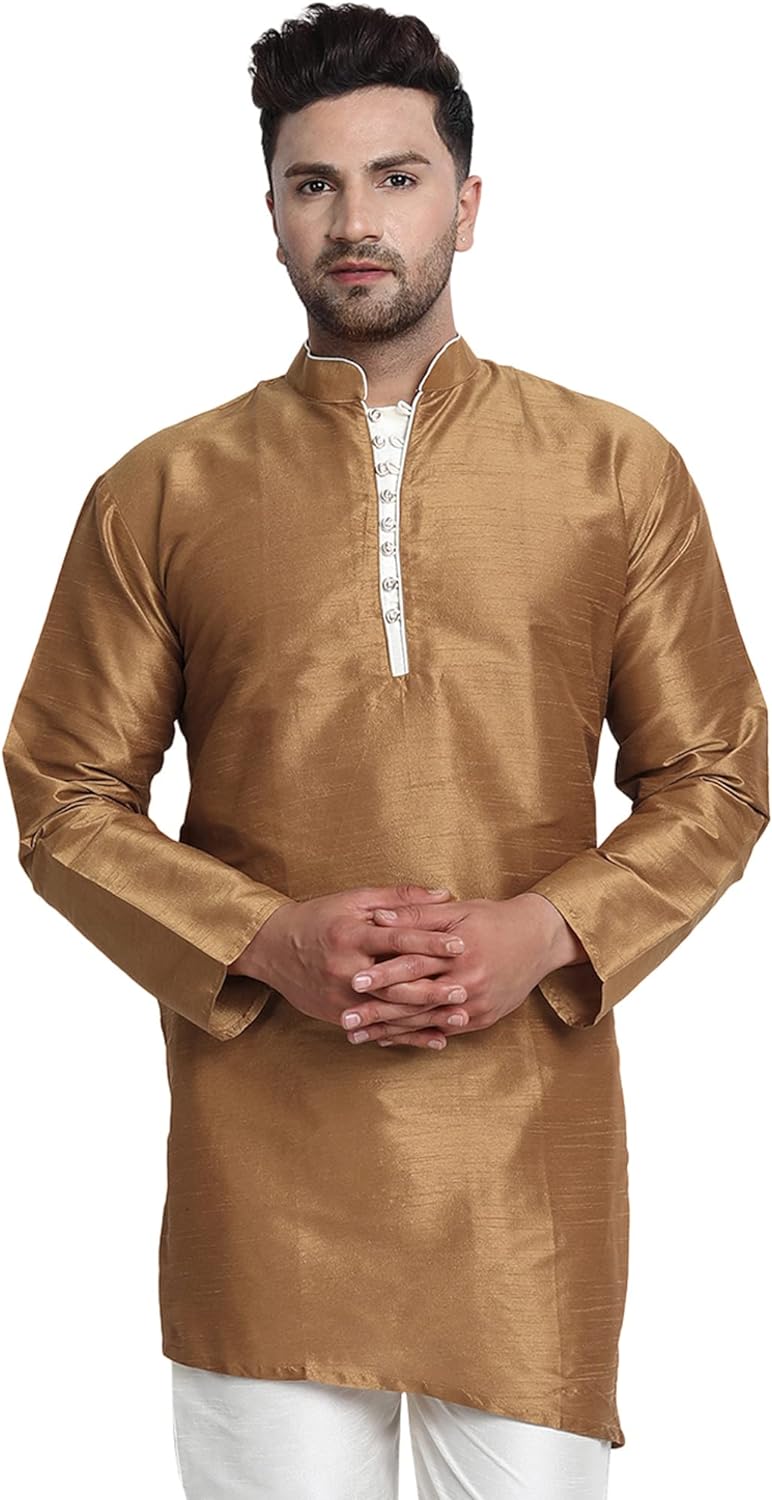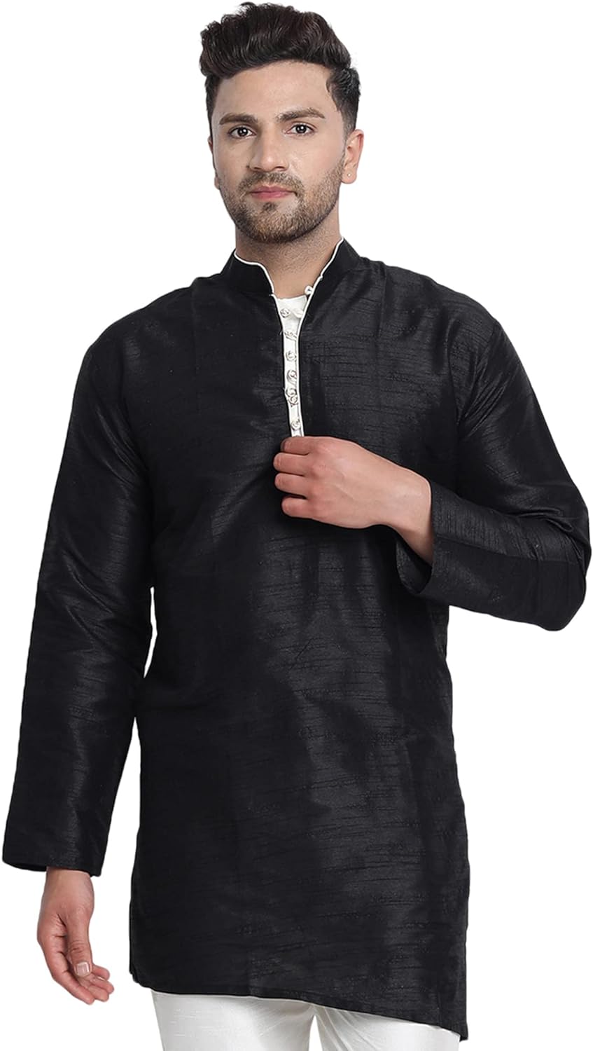 - BEAUTIFUL HANDLOOM KURTA SHIRT : This is long shirt or kurta. There are beautiful buttons on placket that adds beauty to this set. Traditional design on this kurta captures all of the details of the classic Indian men's garment with long sleeves, a long hemline with side vents and a mandarin collar.