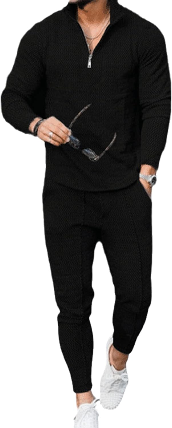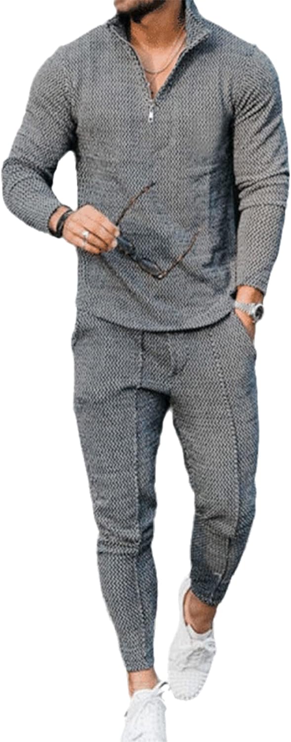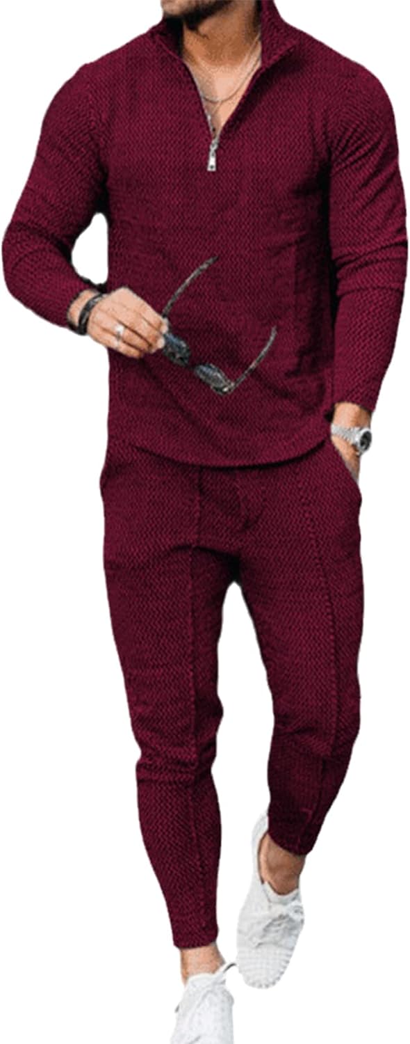 Men's 2 Piece Track Suit Set Casual Set Jogging Sweatsuit Workout Quarter Zip Suit Sport Gym with Pockets Sweatsuit Long Sleeve Long Pant Set Fall Outfits for Men