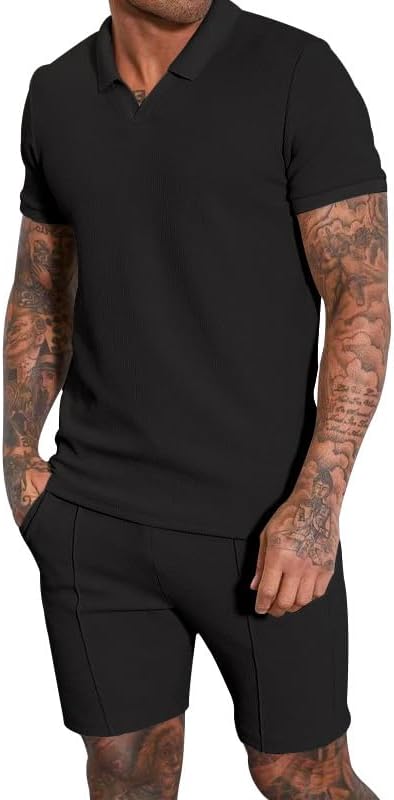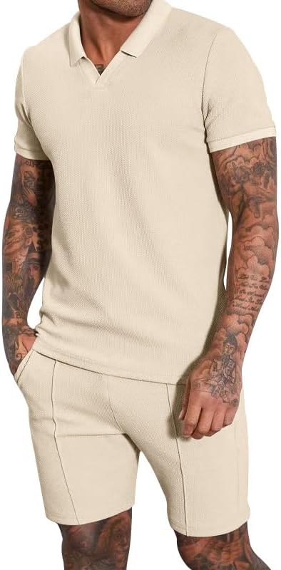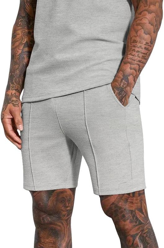 - 【Double Layer Design】: The 2 piece summer outfit is classic double-layer style. Mens casual waffle shirt designs with round neck and regular fit. And the waffle knit shorts is featured with two side slant pockets,elastic waistband and adjustable drawstring for adjusting the waist size.