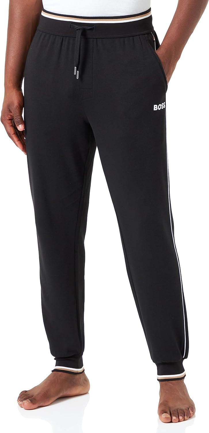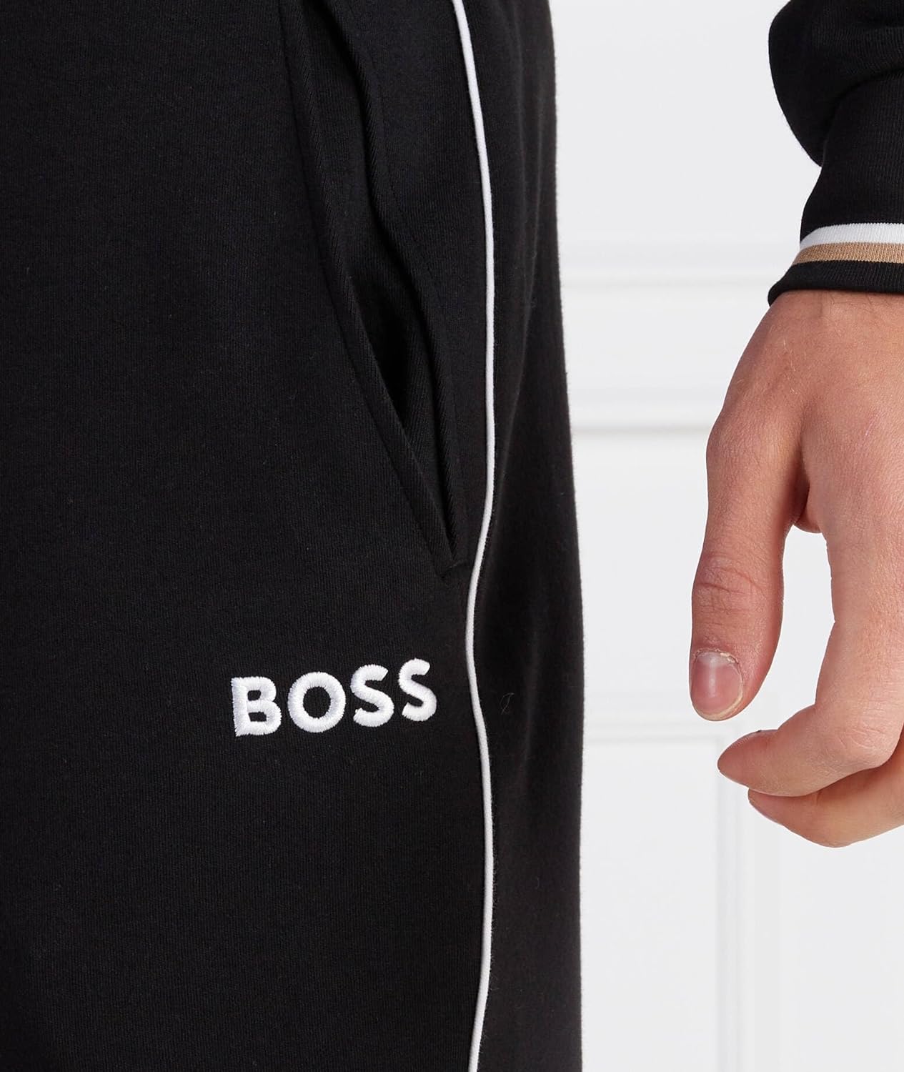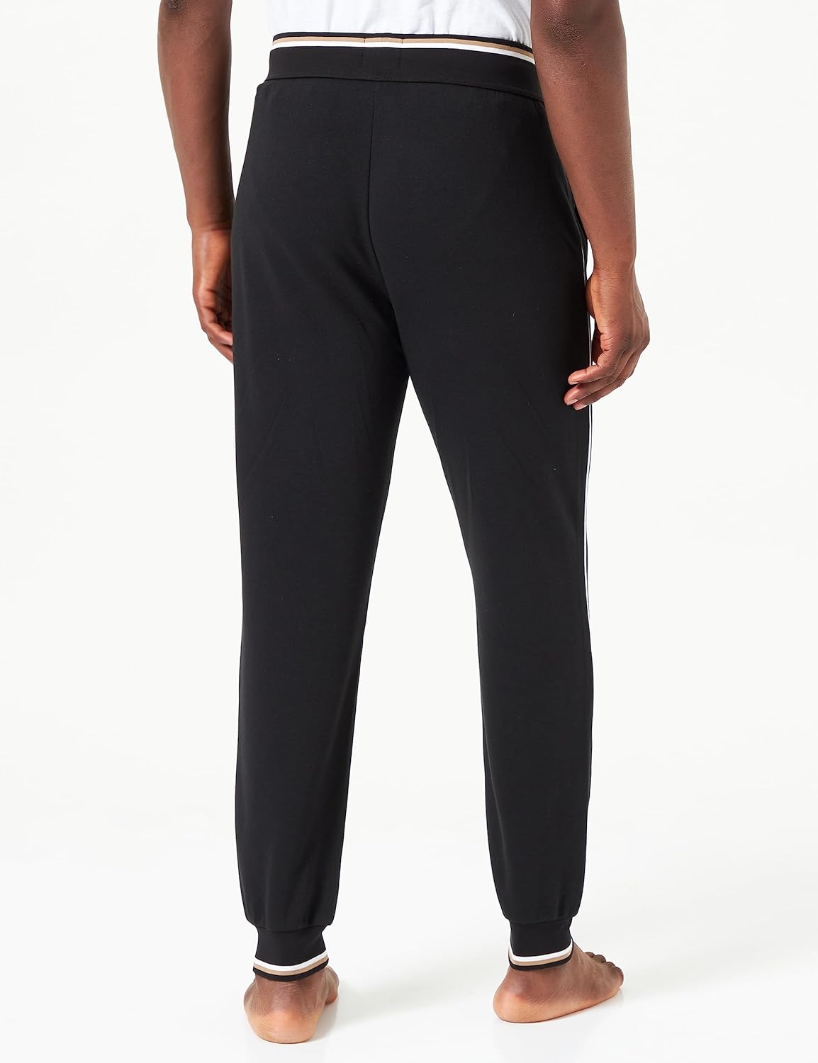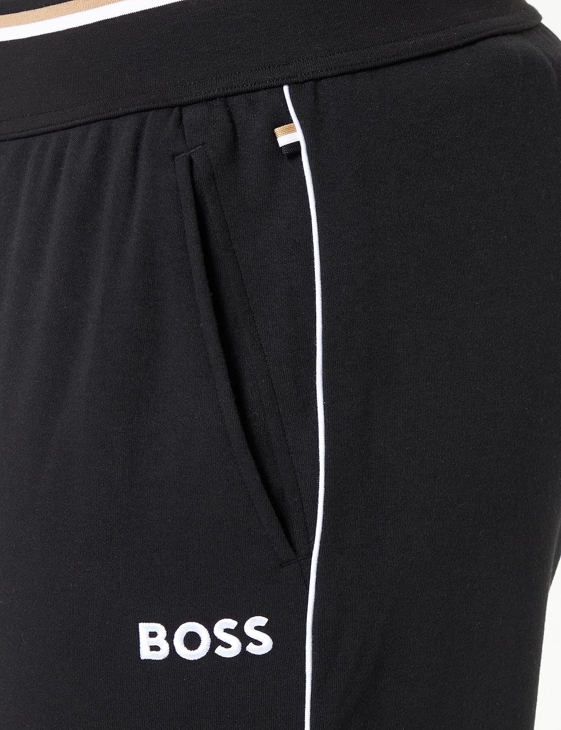 Boss Core Piped Tracksuit Pants is crafted in pure-cotton terry for natural comfort and breathability. Detailed with contrast piping and stripes for a sportive influence. Comes with covered waistband, drawstring and side pockets. Ideal for creating loungewear looks. Comes in black colour. Size: x-large.