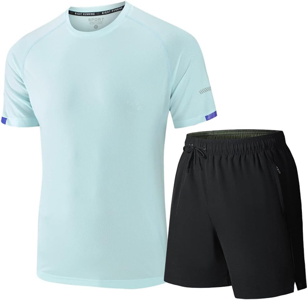 SEOCSING Men's 2 Piece Outfits Short Sets Workout Set Summer Casual Set Moisture Wicking Mesh T Shirts Shorts Sets Gym Running Sportswear Tracksuits Sweatsuits