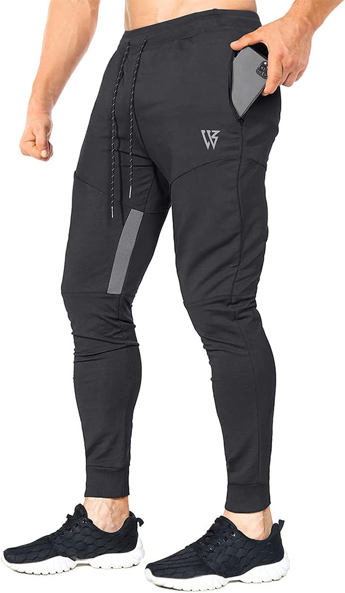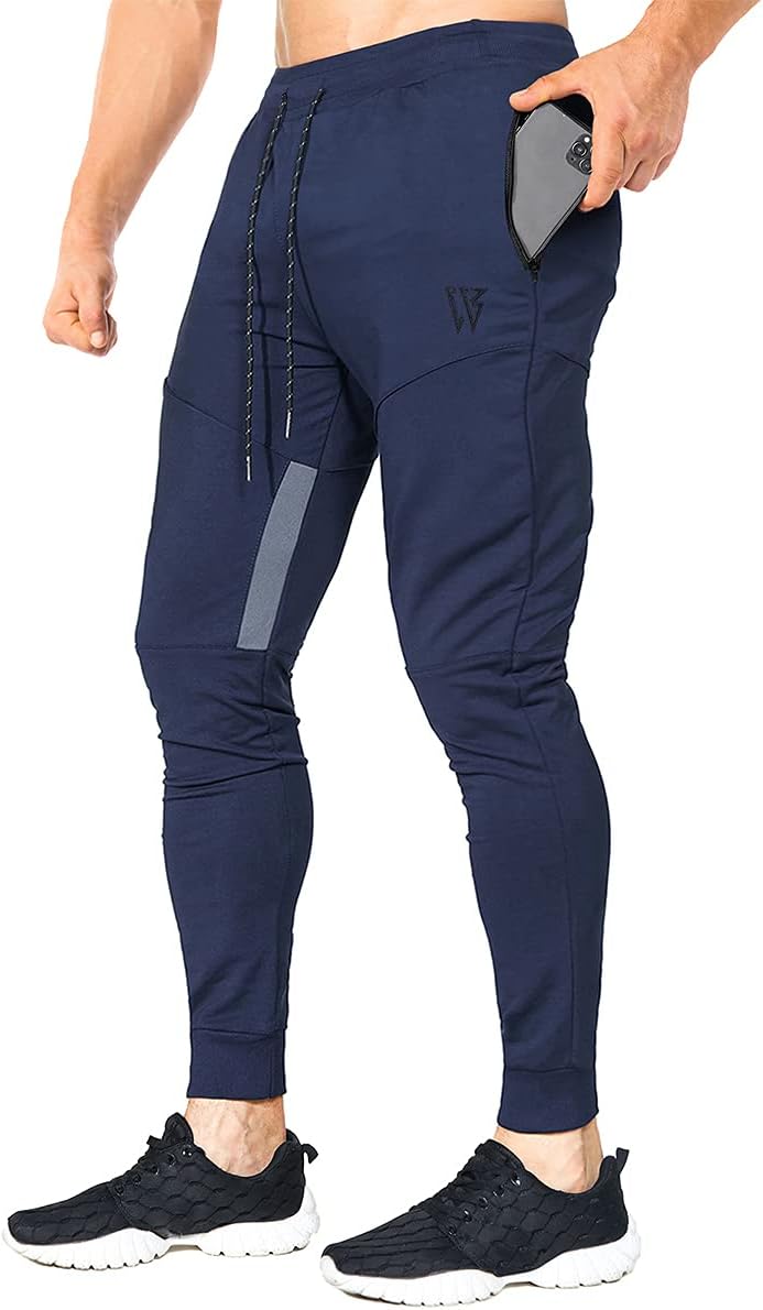ZENWILL Mens Tapered Workout Track Pants, Slim Fit Gym Jogger Sweatpants, Casual Athletic Trousers with Zip Pockets