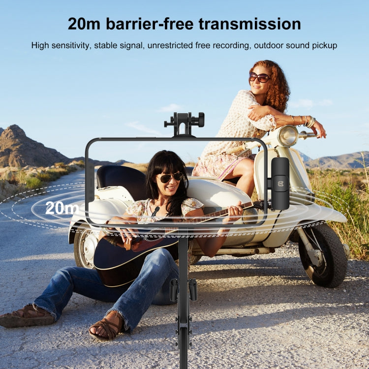 PULUZ Wireless Lavalier Noise Reduction Reverb Microphone for 8-Pin Device, Support Phone Charging(Black)