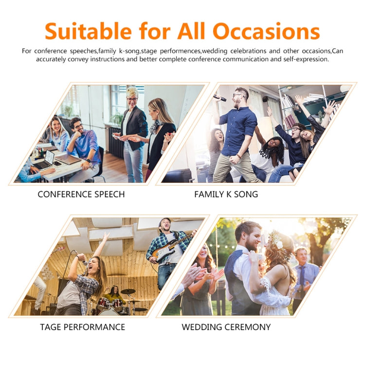 1. UHF Microphone System: Adopt UHF fixed high-frequency circuit design, easily avoid interference frequency. Provides clear, powerful, best authentic sound.