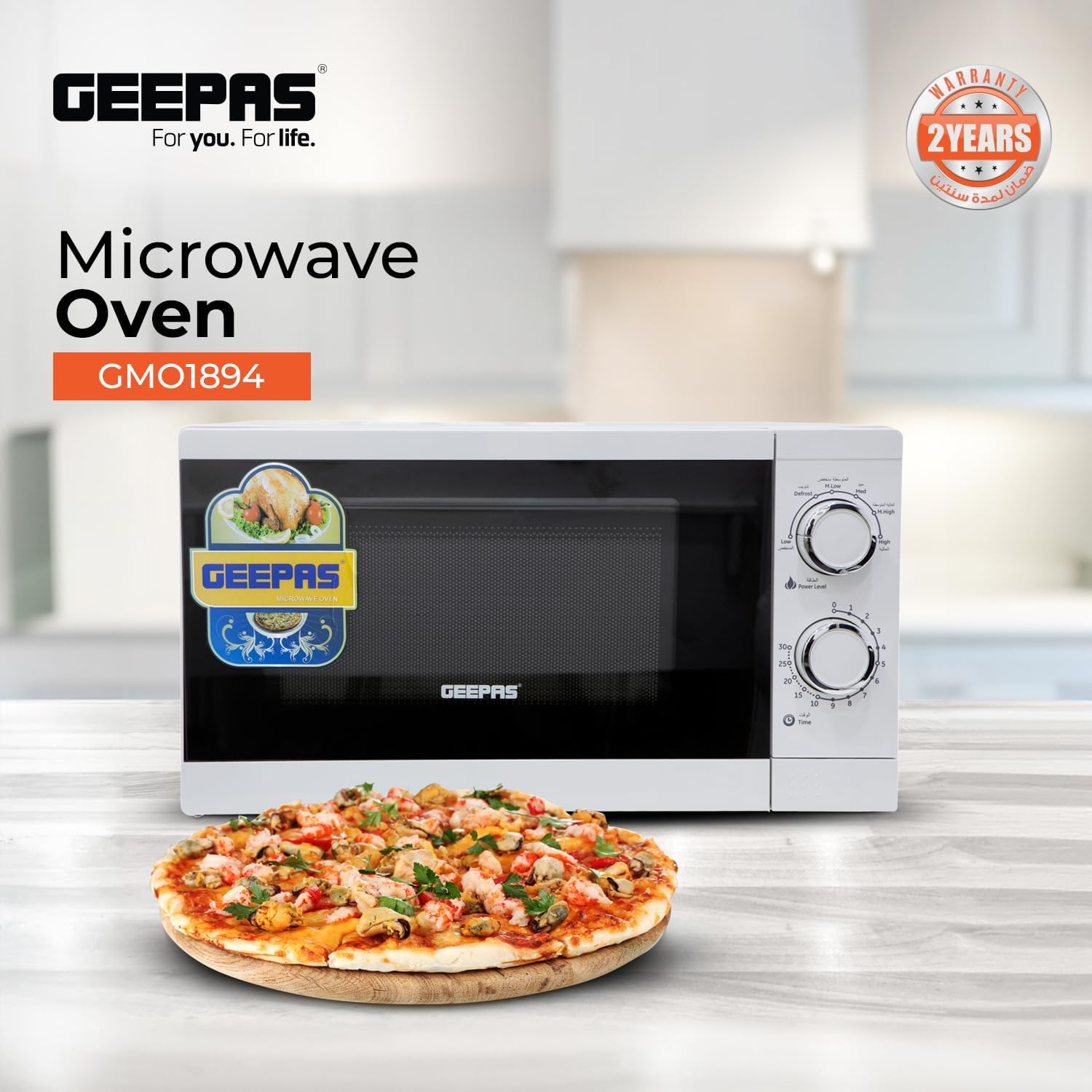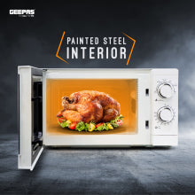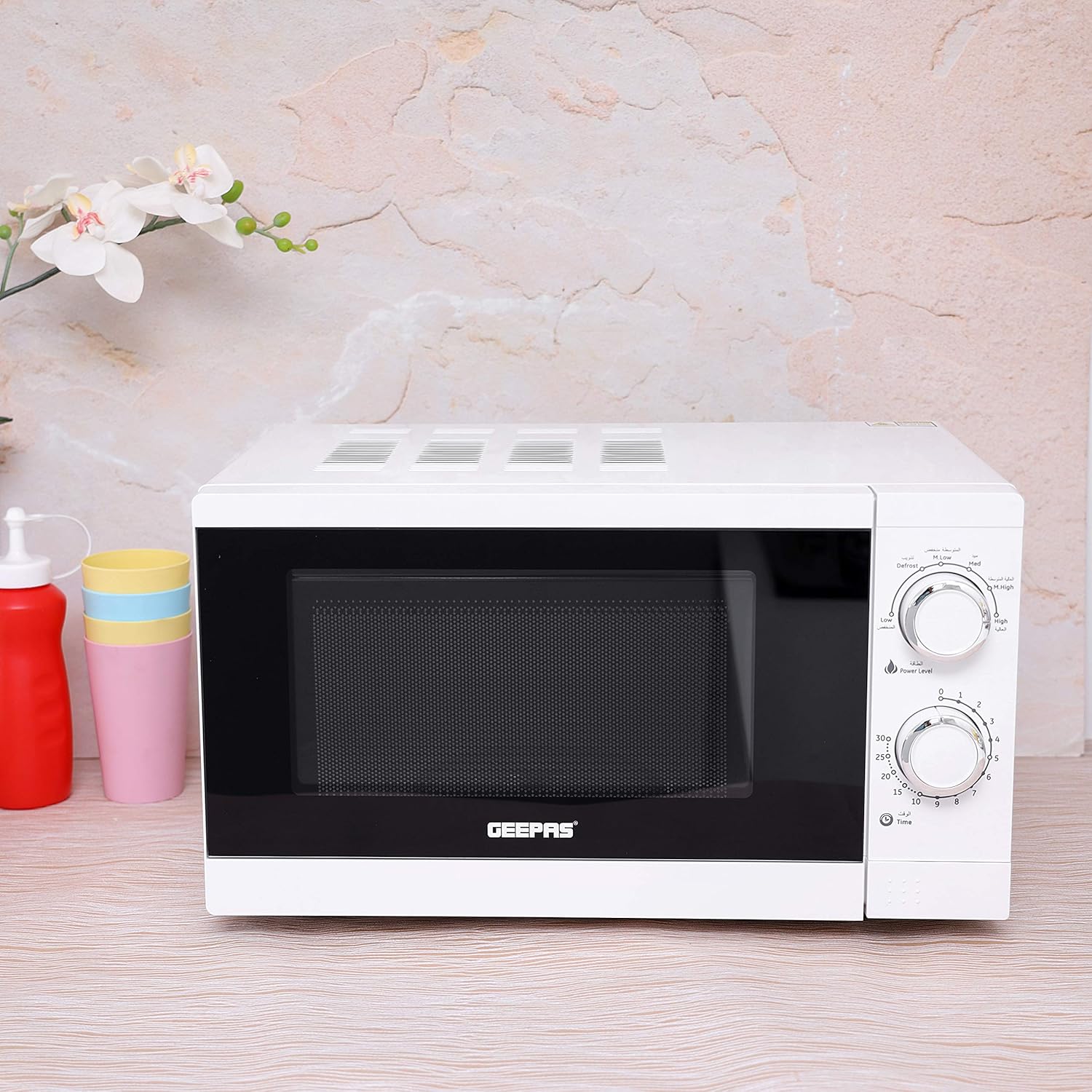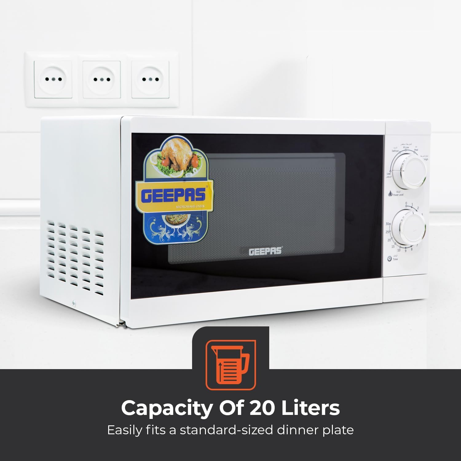LARGE 20L CAPACITY - This Geepas Microwave Oven is also equipped with a timer for added convenience. Create delicious meals with this manual microwave with a 20-litre capacity, suitable for a standard dinner plate. Despite such a roomy volume, the size of the device is quite small and will fit into any kitchen.