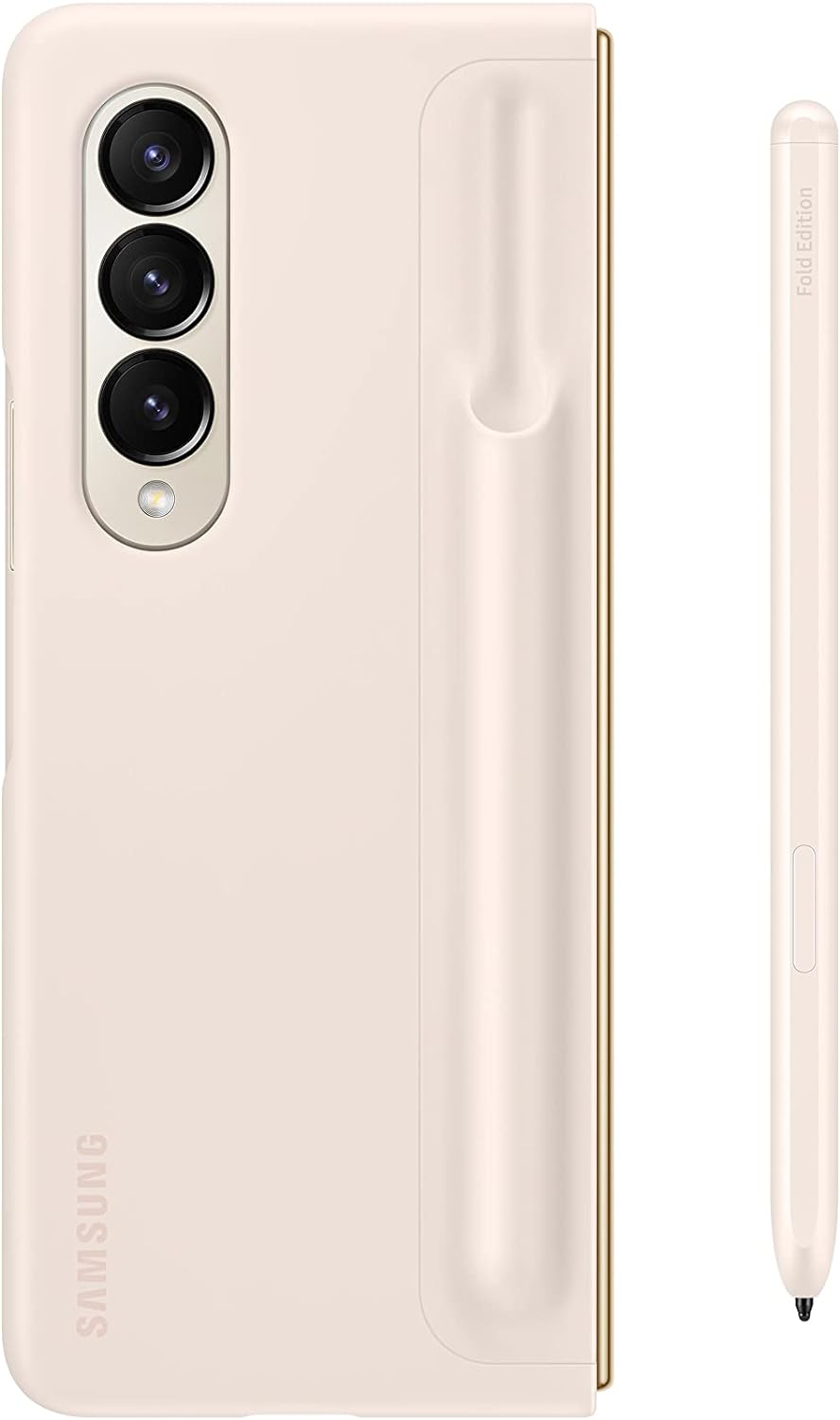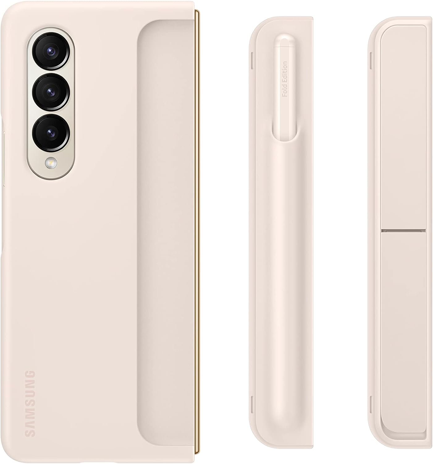 SAMSUNG Galaxy Z Fold4 Standing Cover with S Pen and S Pen Holder, Protective Phone Case with Kickstand for Hands Free Viewing, US Version, Sand