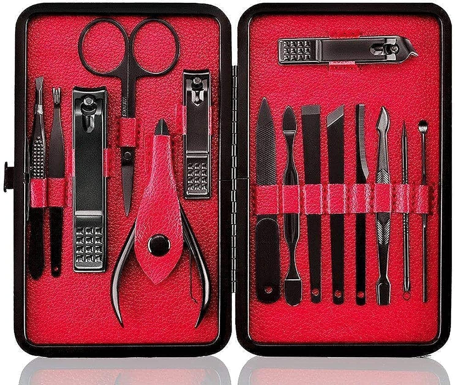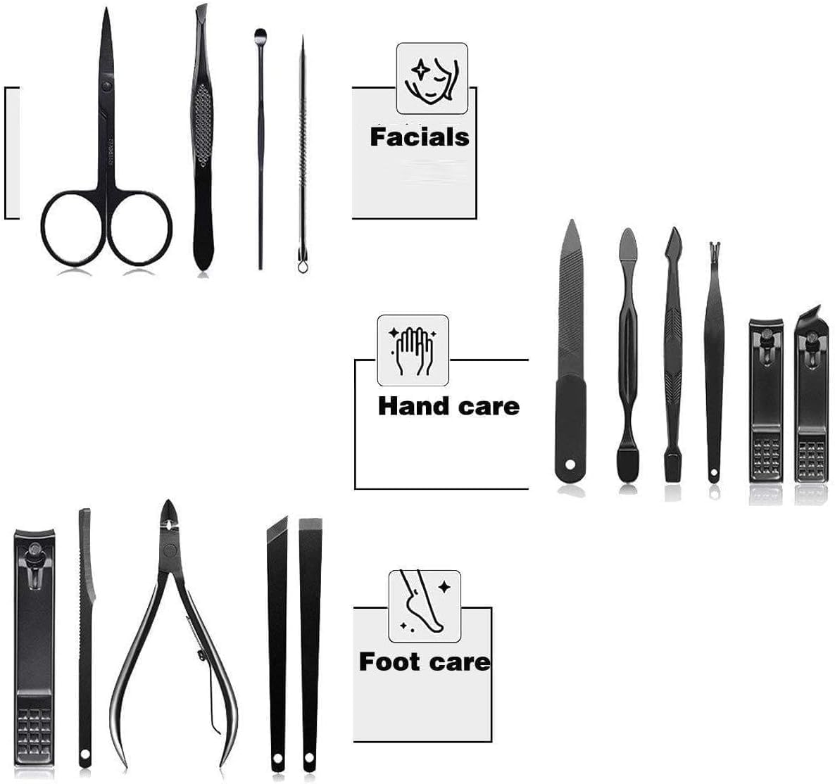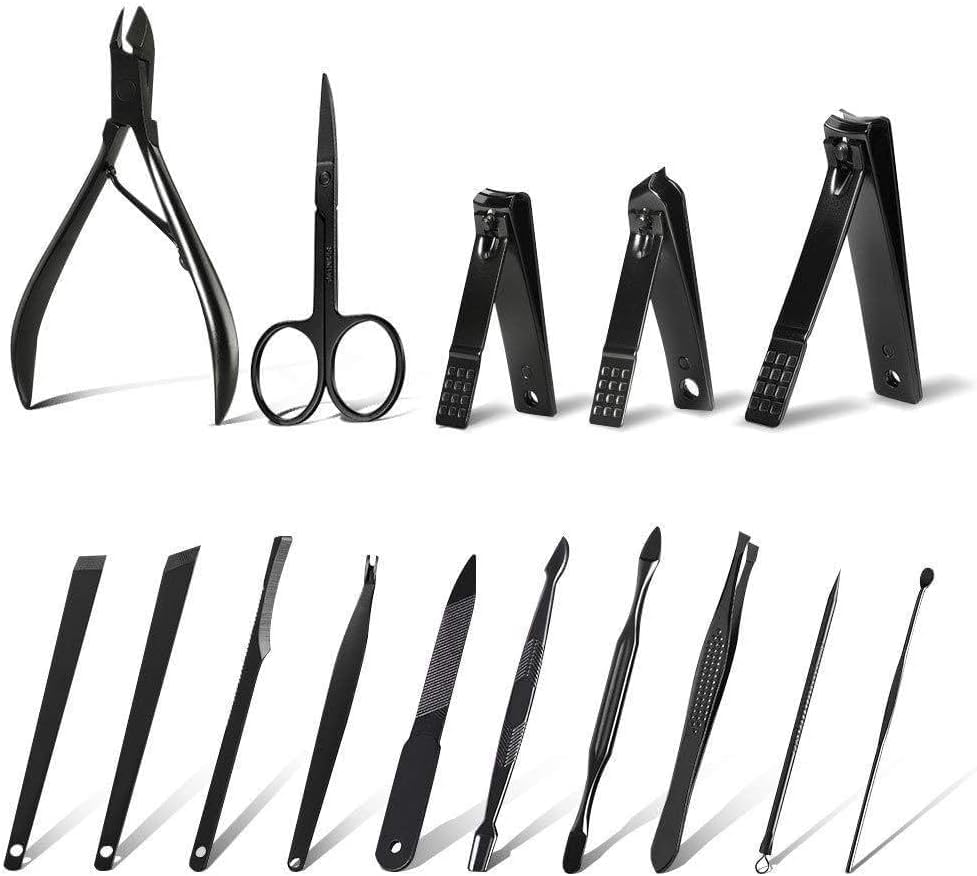 Professional Manicure pedicure kit & nail clippers set, grooming kit-15 pieces are the best product with luxurious travel case. ❤【The Best Manicure Set】Professional manicure tool set 15 in 1. All tools are made of high-quality stainless steel, sharp and durable, portable, comfortable to use and never rust to protect your health. black manicure set nail clippers set fingernail cutters nail scissors. ❤【Multi-Functional Nail Kit】These professional Manicure Kit Contains 15 pieces in for three functions including hand care(for fingernail part), facial care(for facial and brow trim part), and foot care (for Toenails part). The manicure pedicure set meet all you need. nail clippers set fingernail black manicure set cutters nail scissors. ❤【Easy to Use, Better Design】Our nail kit, highlight black tools with a durable and fashion PU leather case. ergonomic design, Very easy to trim thick nails. Our manicure pedicure kit are not only good-looking in appearance and packaging, but also its quality details. The handle has the corresponding grain which is not easy to slide off, Waterproof and and never rust. nail scissors nail clippers set fingernail black manicure set cutters. ❤【Easy Store and Best Gift】The case of our nail kit is made of high quality leather case, beautiful and durable, perfect for travel and everyday life! With a beautiful Outside paper box too. Very elegant and gorgeous. It's a best for Valentine's Day, Birthday, Marriage, Mother Day, Christmas and Thanksgiving for men and women. fingernail black manicure set nail scissors nail clippers set cutters. ❤【Best Service For You】We offer the highest quality manicure and pedicure kit and will make sure you are 100% satisfied. If quality issue occurred feel free to contact us please. We are committed a 90-days money back guarantee and Lifetime warranty promise, your satisfaction is my great happiness! nail clippers set nail scissors finger nail black manicure kit cutters