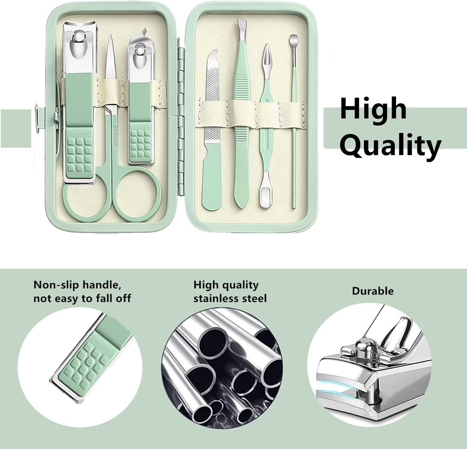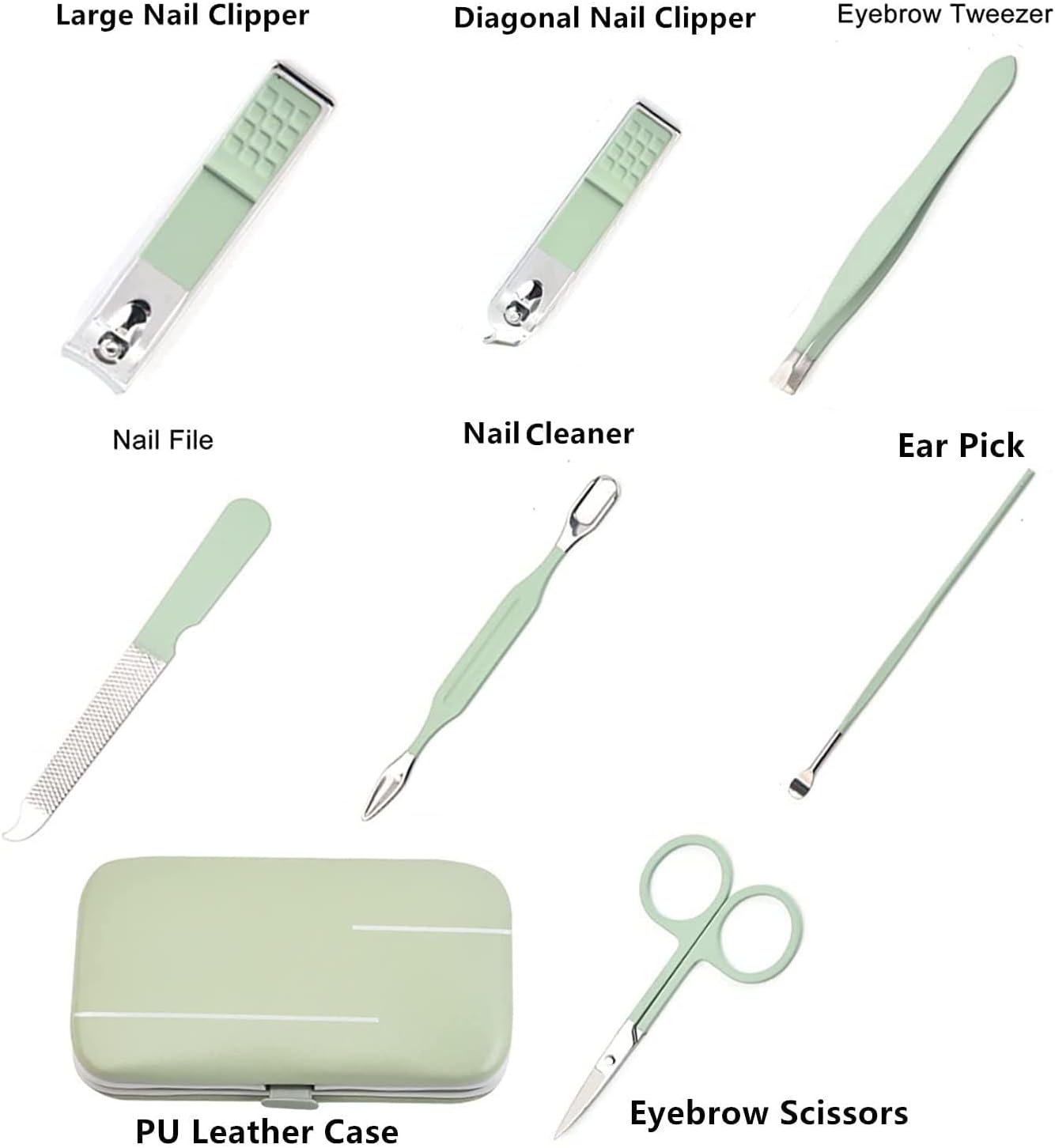 Manicure Set Men Women Nail Clipper Set 8in1 Stainless Steel Toe Finger Nail Clipper Personal Care Tools with Portable Travel Case Pedicure Tools Grooming Kit Gifts for Men Women Wife Family Friend