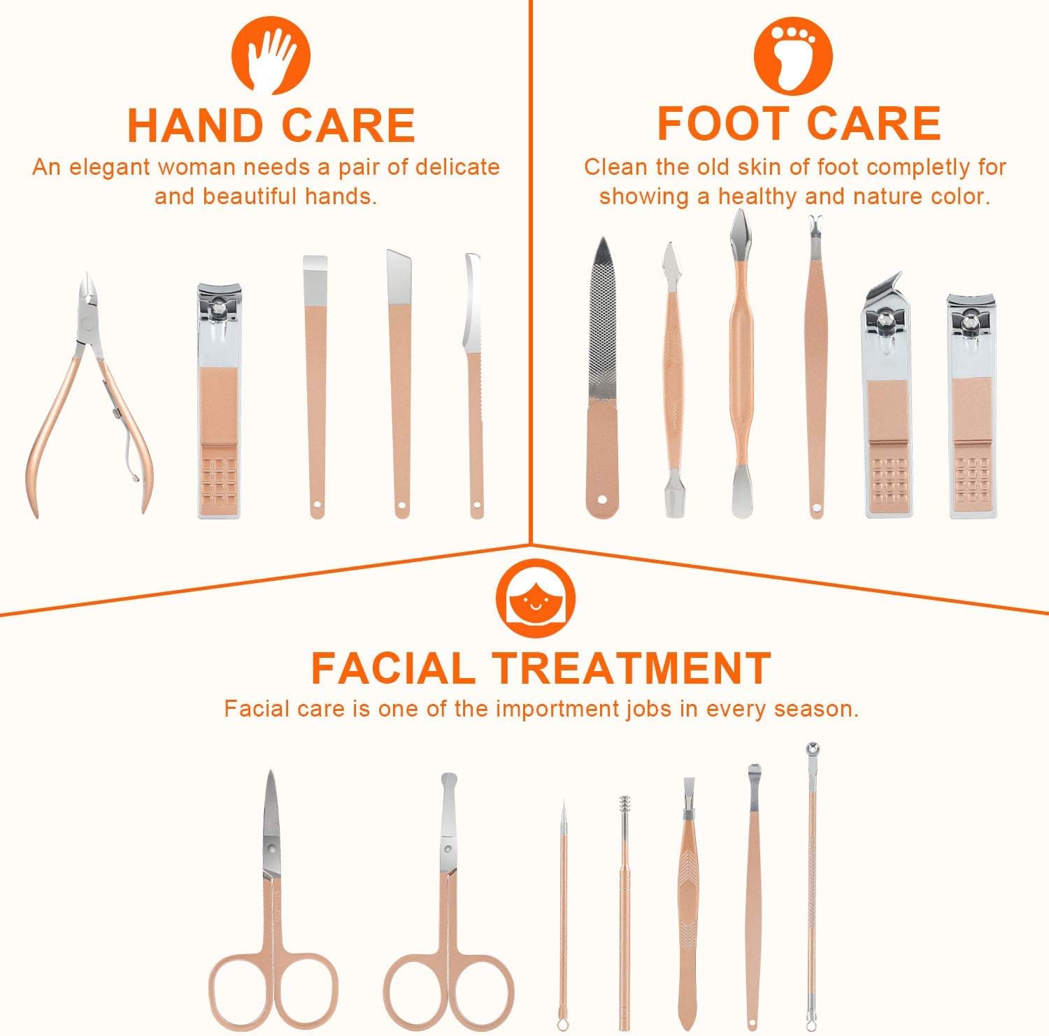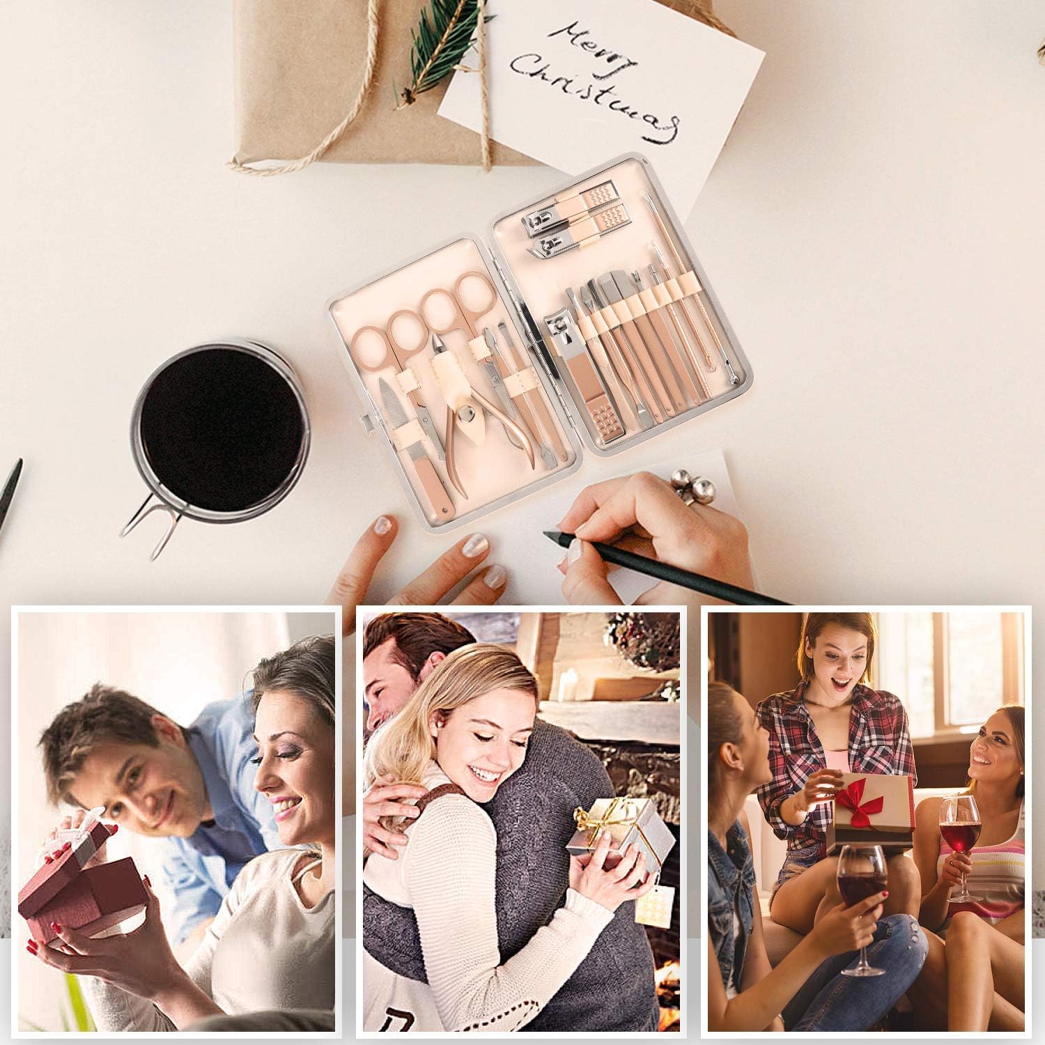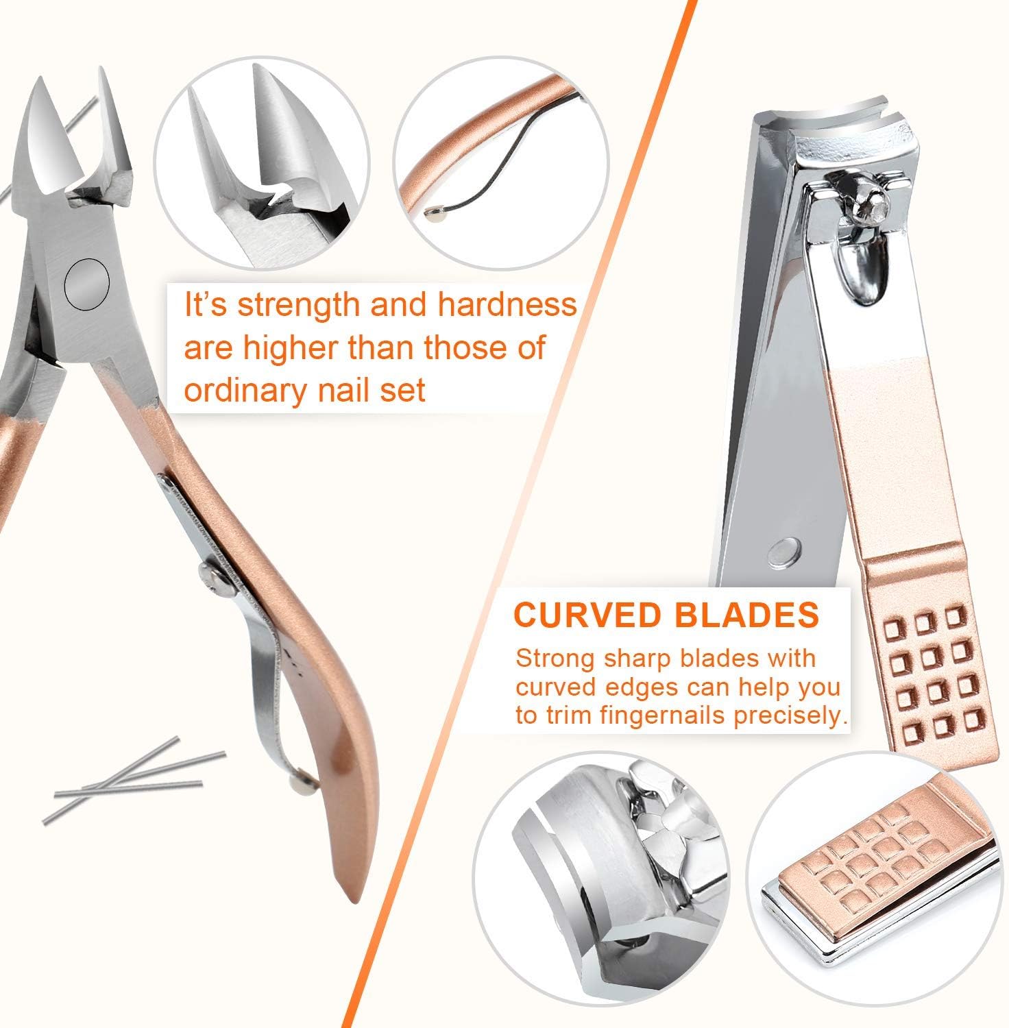 ORiTi Manicure Set Nail Clippers Pedicure Kit, Professional Rose Gold Stainless Steel Personal Grooming Kit, 18 in 1 Nail Care Tools with Luxurious Leather Travel Case (ROSE 18 PC SET)