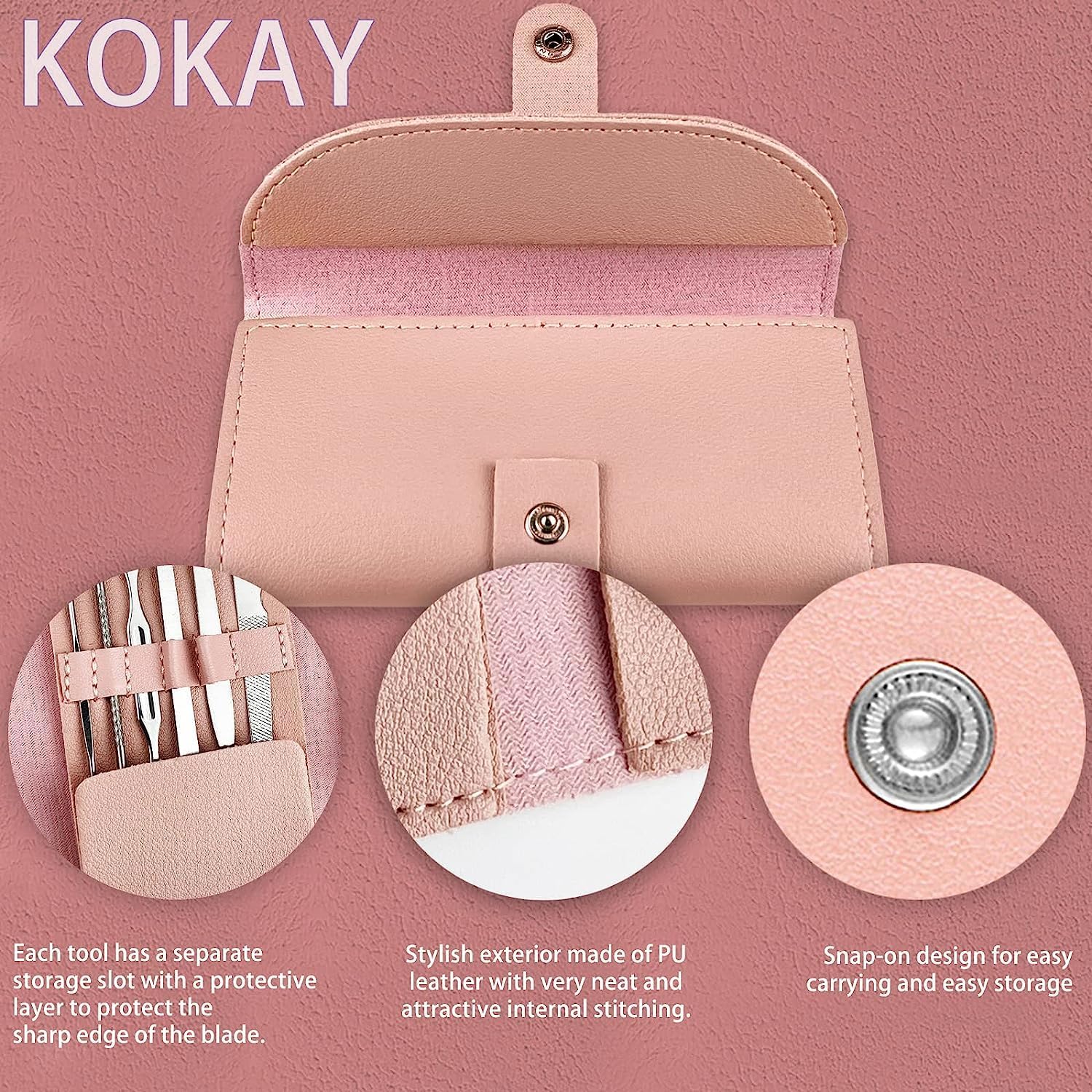 - STYLISH & ELEGANT: The case of nail care tools is made of high-quality PU leather. The appearance is stylish and elegant, and it is comfortable to the touch. Inside is a neat two rows of manicure tools, each tool is spaced apart, easy to access, neat and beautiful. The upgraded inner leather cover can cover sharp tools when tools stored in the case, effectively avoiding potential risk of poking.