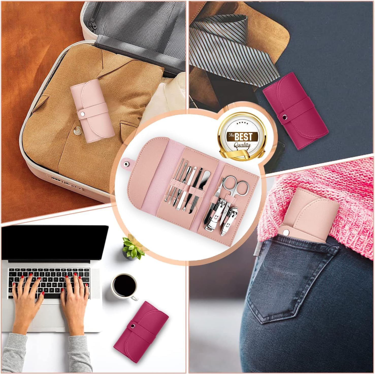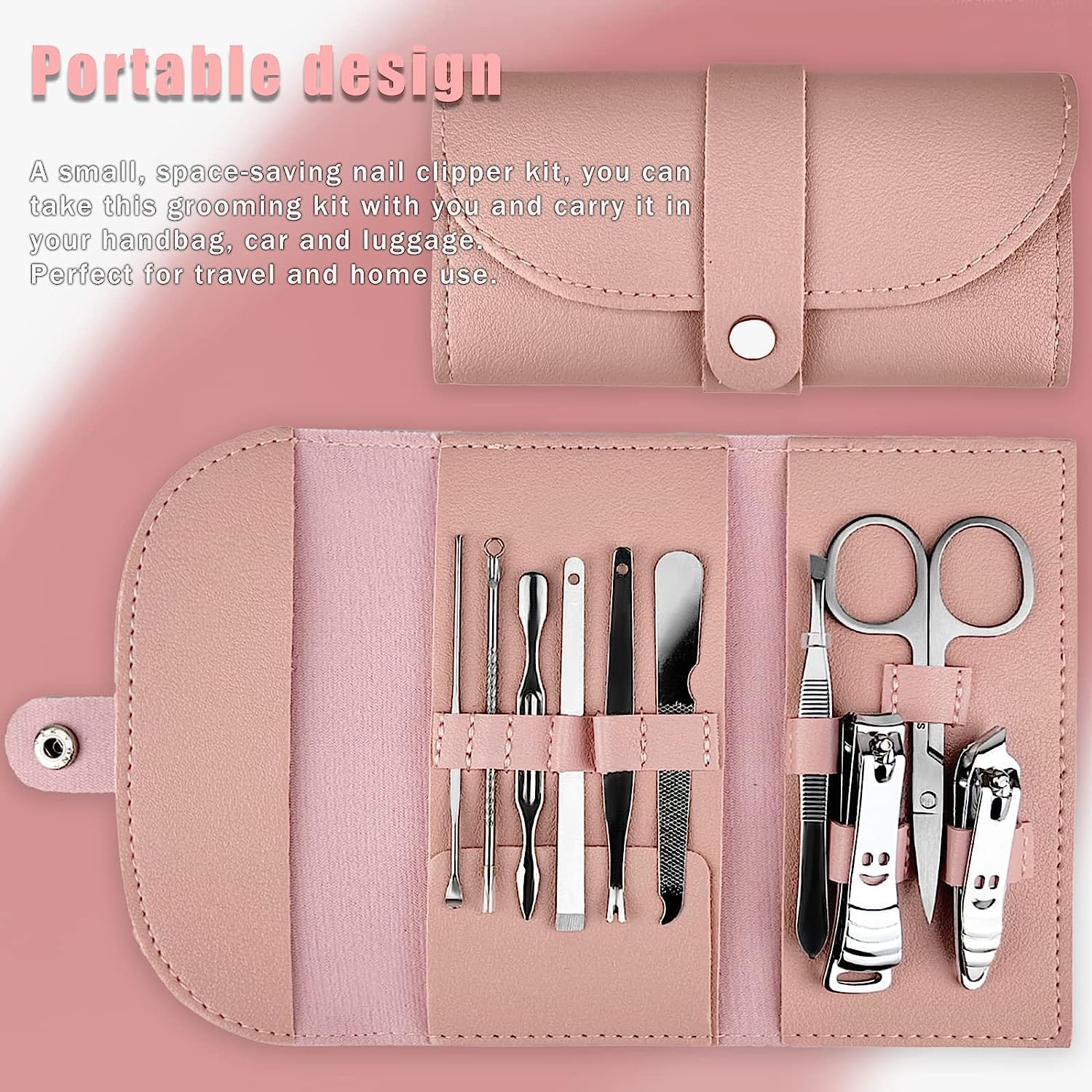 - LIGHTWEIGHT & PORTABLE: All manicure care tools & toenail nipper kit are in a portable pink leather folding bag. The portable folding bag is made of stylish, lightweight and classic PU leather like a mini tote bag with compact size, making it a great accessory to carry around. You can put it at anywhere you want, such as handbag, car, luggage, office and so on, manicure pedicure set grooming kit is very suitable to use at home or travel.