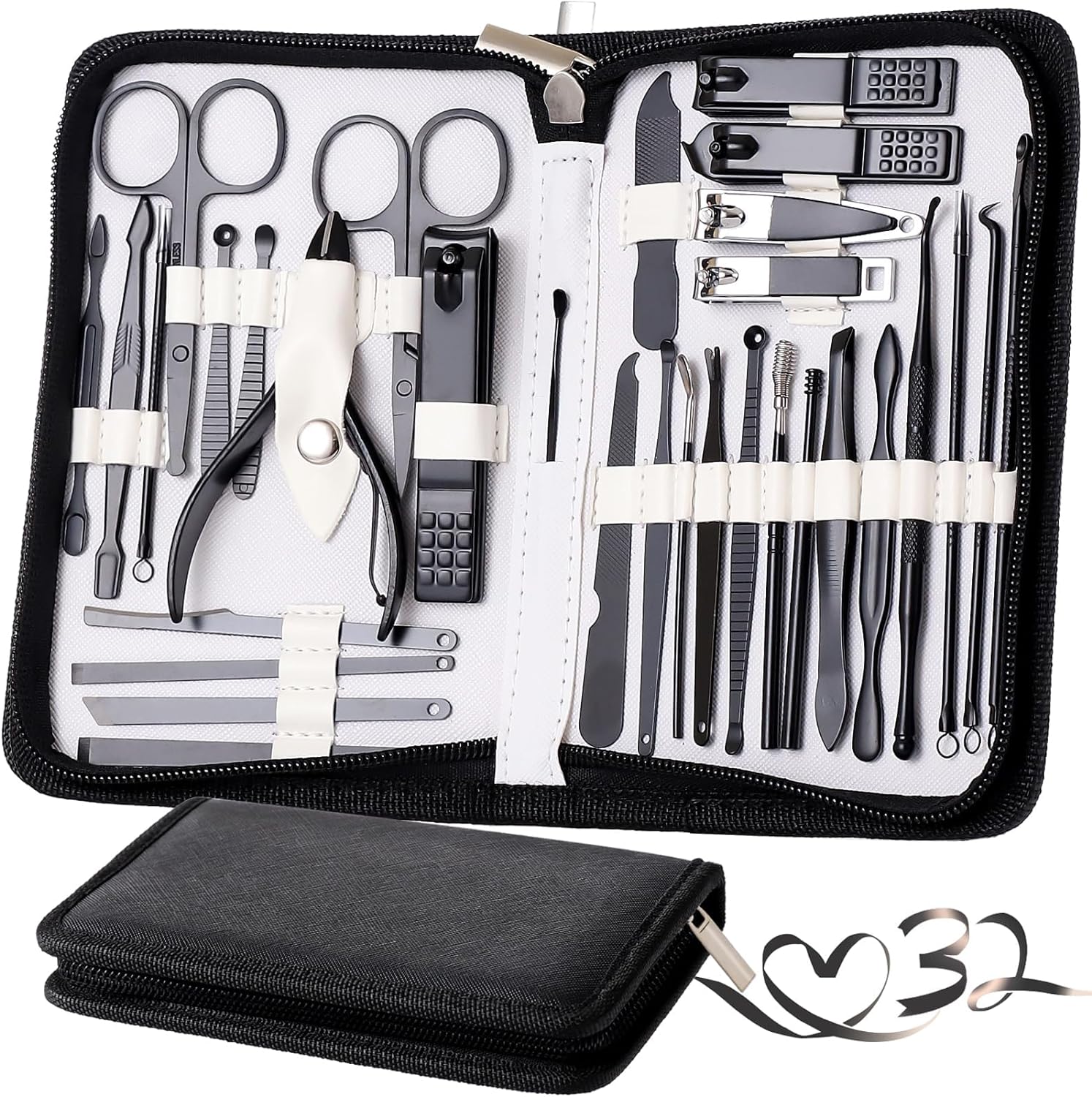 [Upgrade] Manicure Set Pedicure Kit Womens Nail Clippers Set, 32 in 1 Professional Grooming Care Tools Nail Kit Including Facial, Fingernails and Toenails Care with Travel Case Women (Black)