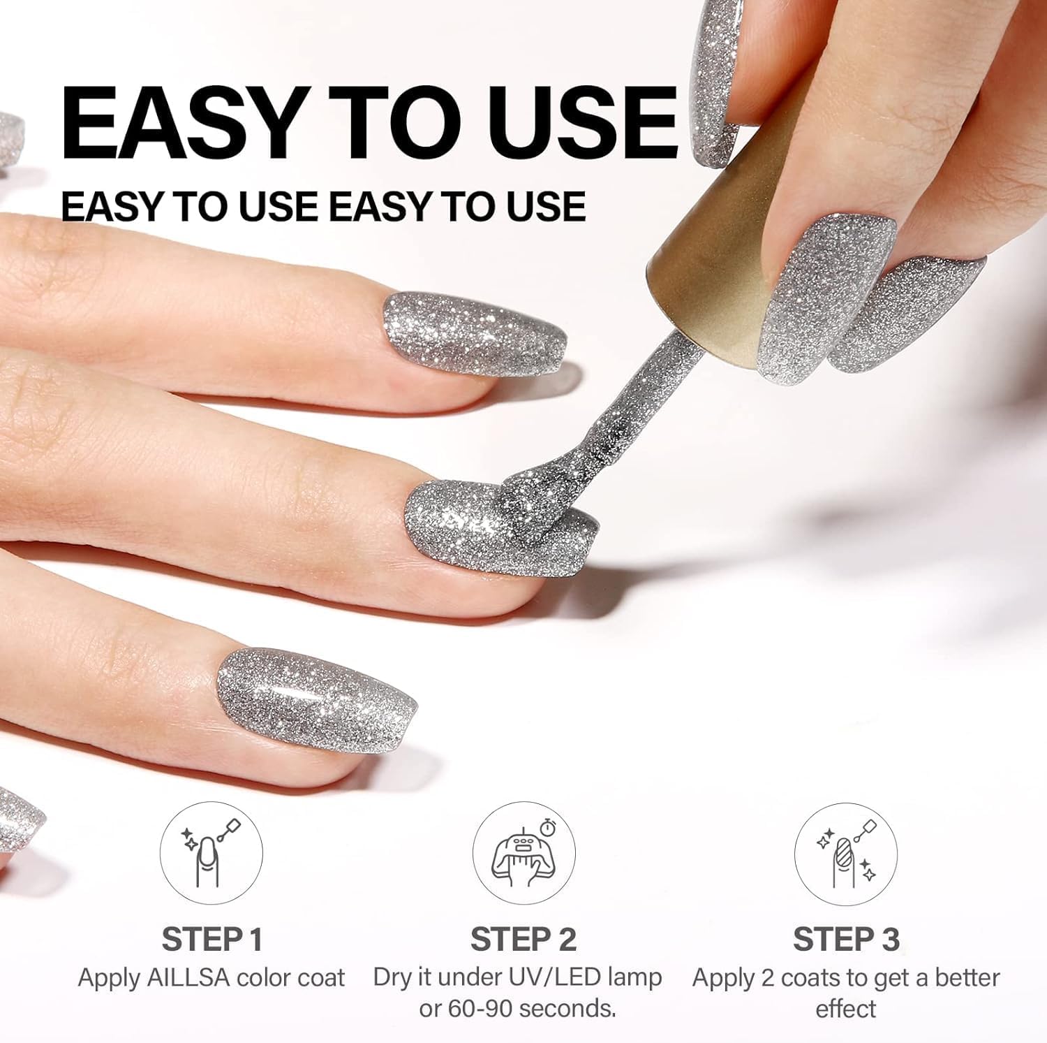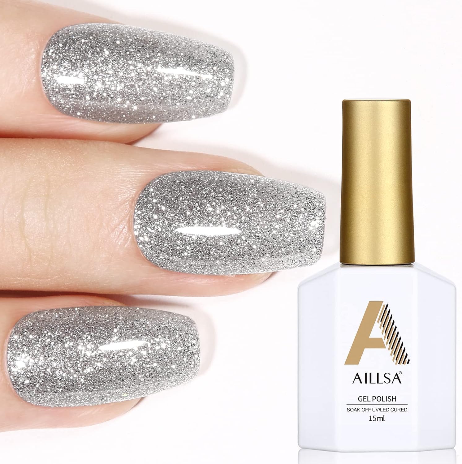 AILLSA French Nail Gel 15ml - Sliver Glitter Long Lasting, Soak Off UV – BUYO