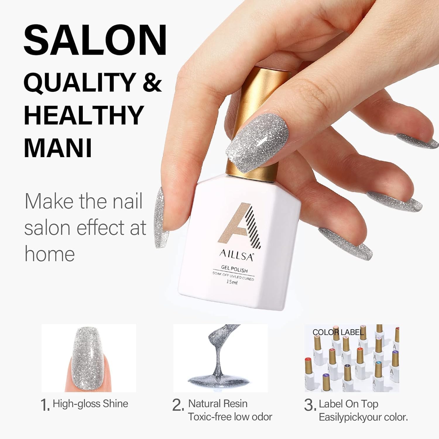 ✔【Fashionable & Changeable】AILLSA Glitter gel nail polish select the most popular colors in 2023, high color saturation allows you to create more diverse styles and more fashionable salon-level professional nail art, redefining your style with every outfit and occasion.Suitable for all seasons and daily routine life. Also suitable as a gift for Halloween, Thanksgiving, Christmas Holidays, special events, and dating.