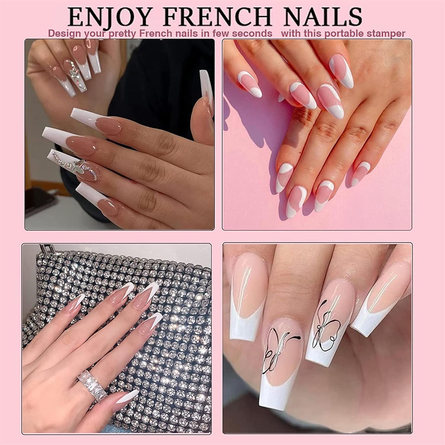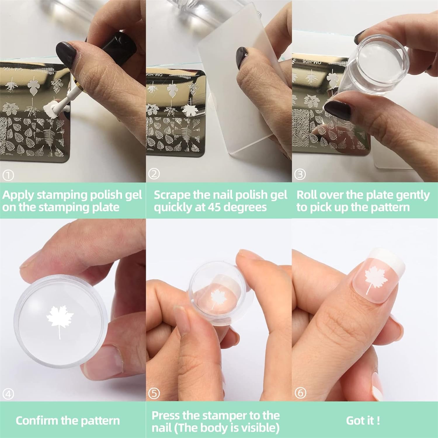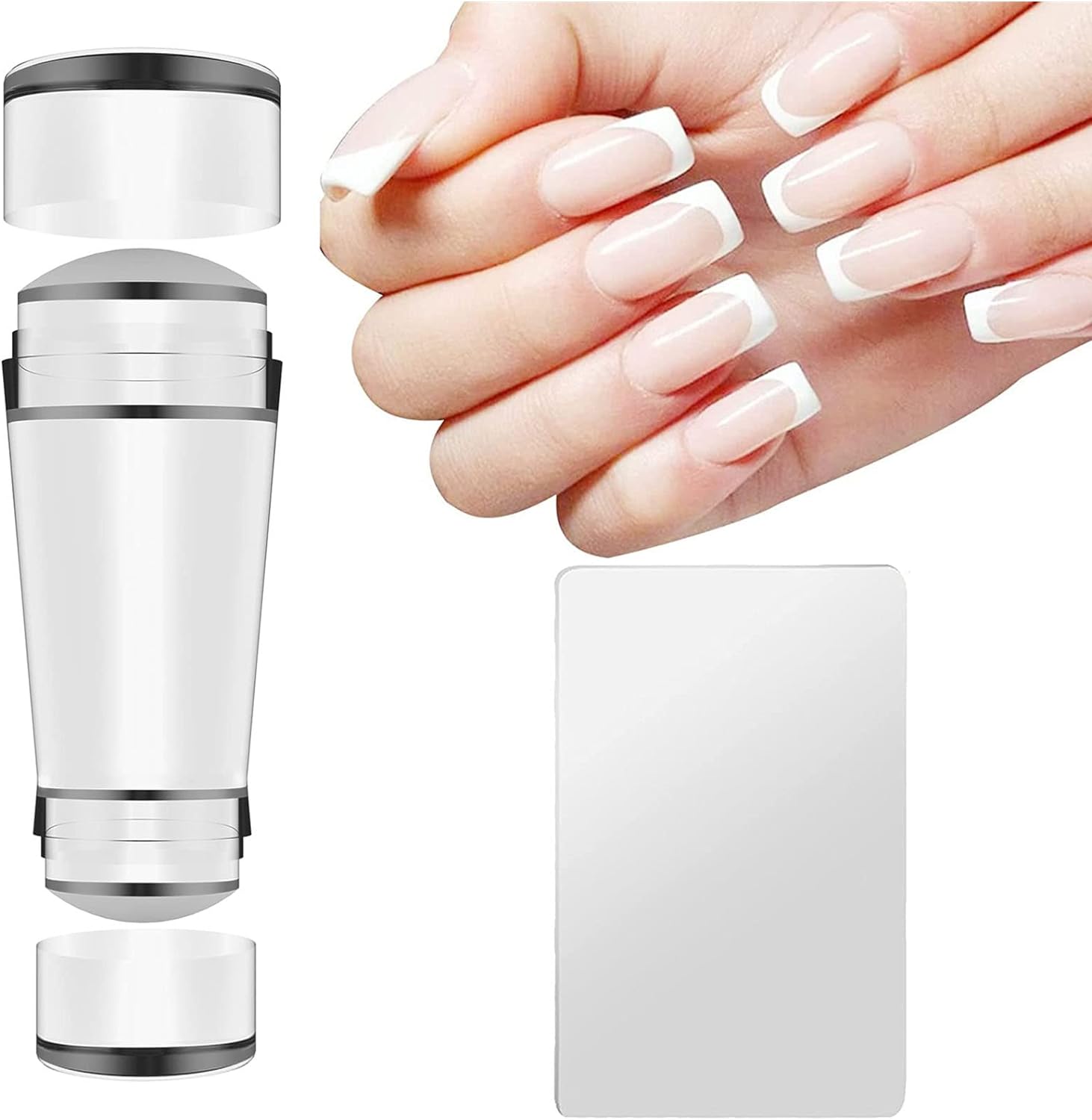 - ✨【Wide Applications】Silicone nail stamper kit suitable for professional use and home use, which can make you nail look beautiful. Stamper for nails design not limited to any types of nails, acrylic nails, artificial nails, natural nails, gel polish, gel nails extension. Works great on bare nails or uv gel polish.
