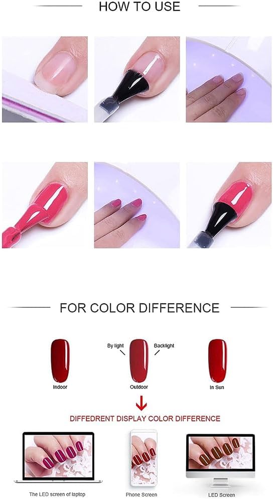 1.The nail gel kit have been made of high bright effect, this nail polish will be quick to build shape, and you can DIY nail art patterns for showing your personality. It has many kinds of colors for you to choose for decorating your nails for making it bright for long time without fading.
