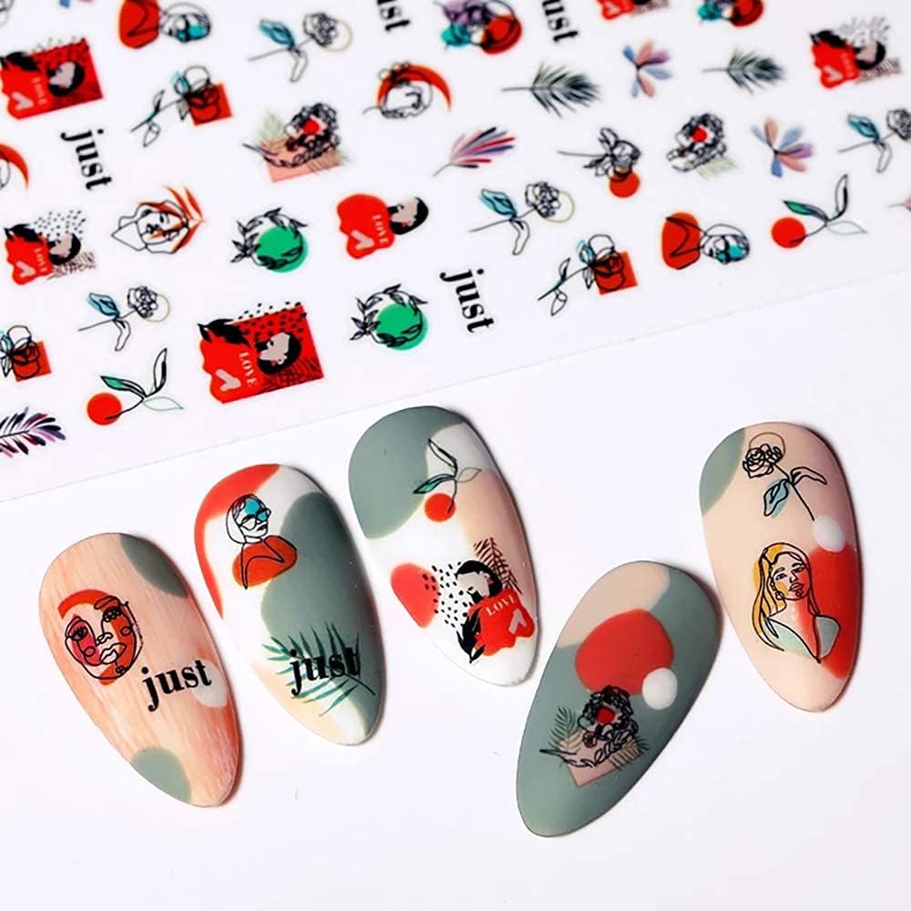 🎀Abstract Nail Stickers: There are 6 sheets of graffiti fun nail stickers with various colors, abstract lady face nail decals are full of sensuality and elegance, various charming patterns bring you a different mood.