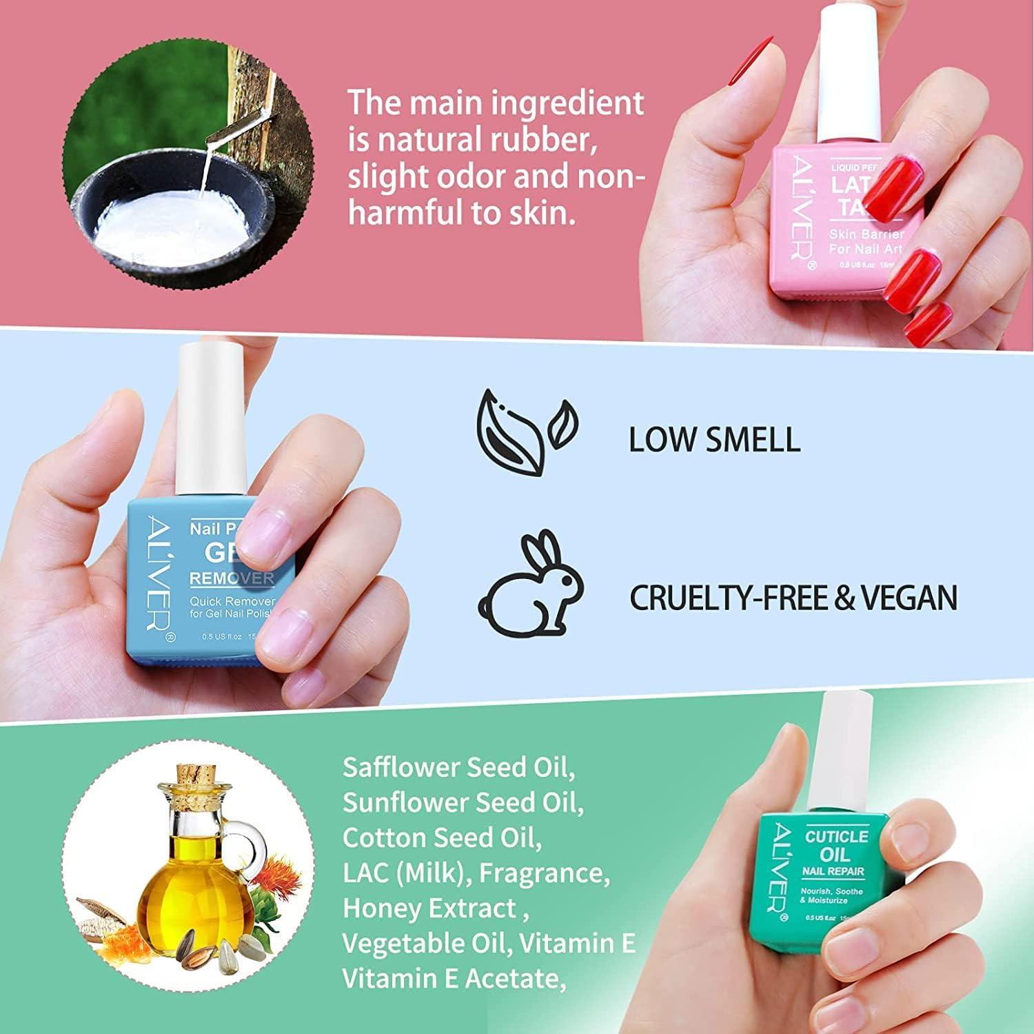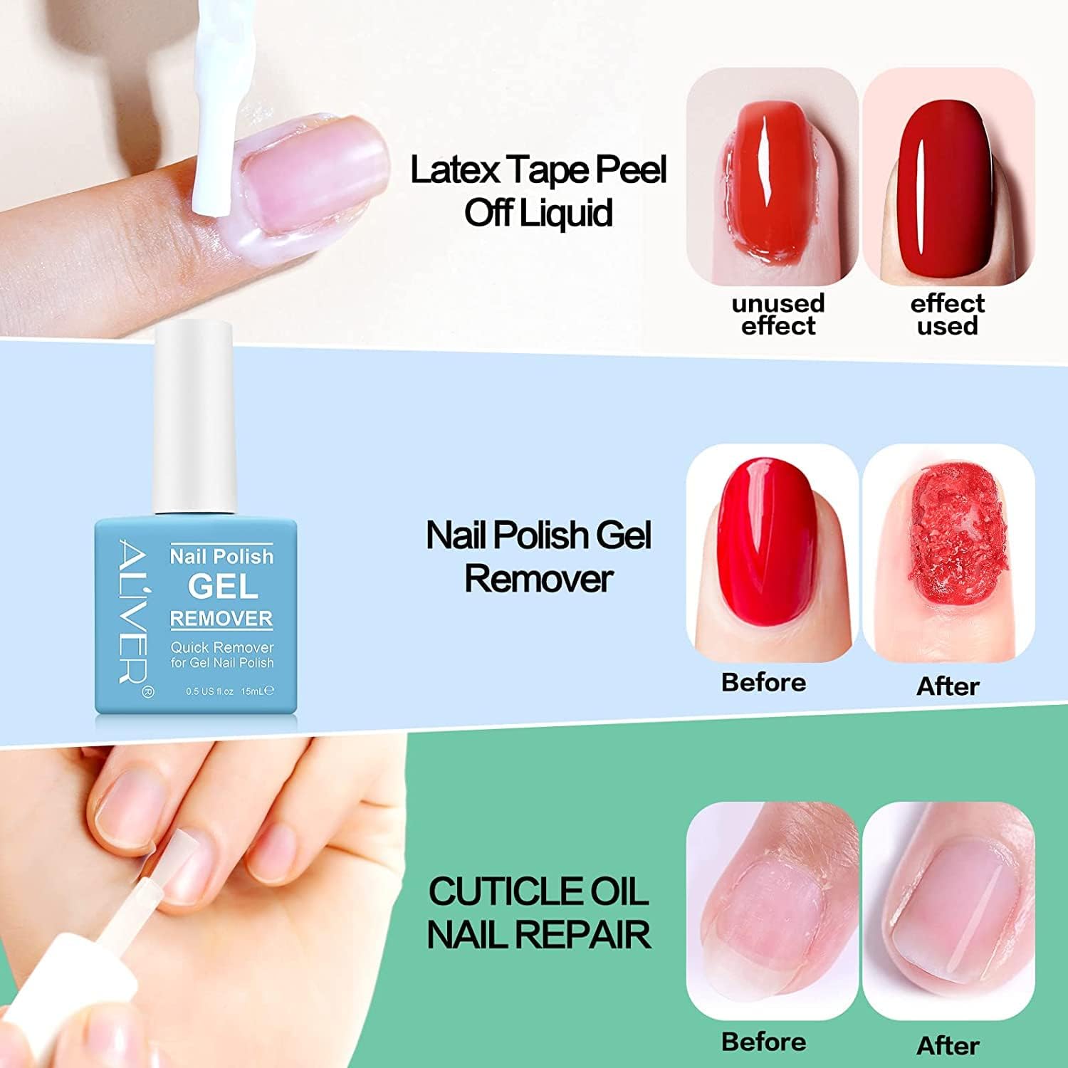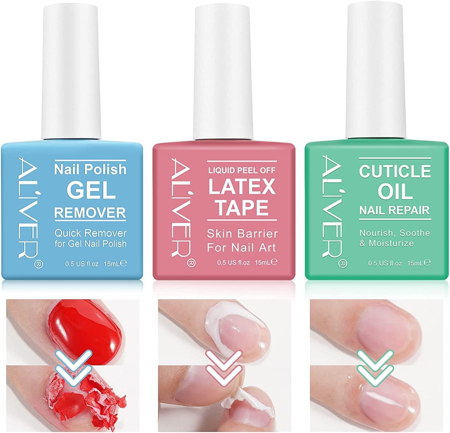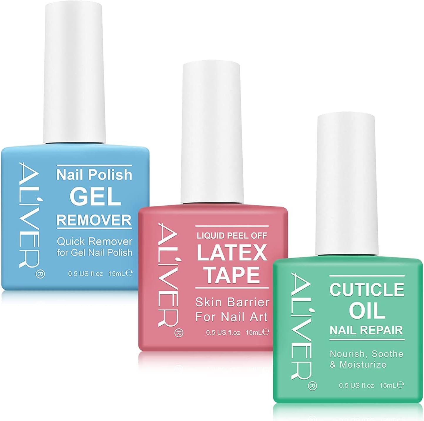 ALIVER 3 Pack Gel Nail Remover Kit,Nail Polish Remover with Nail Cuticle Oil and Latex Tape Kit, Magic Gel Nail Polish Remover, Easily & Gently, No Need For Foil, Soaking Or Wrapping
