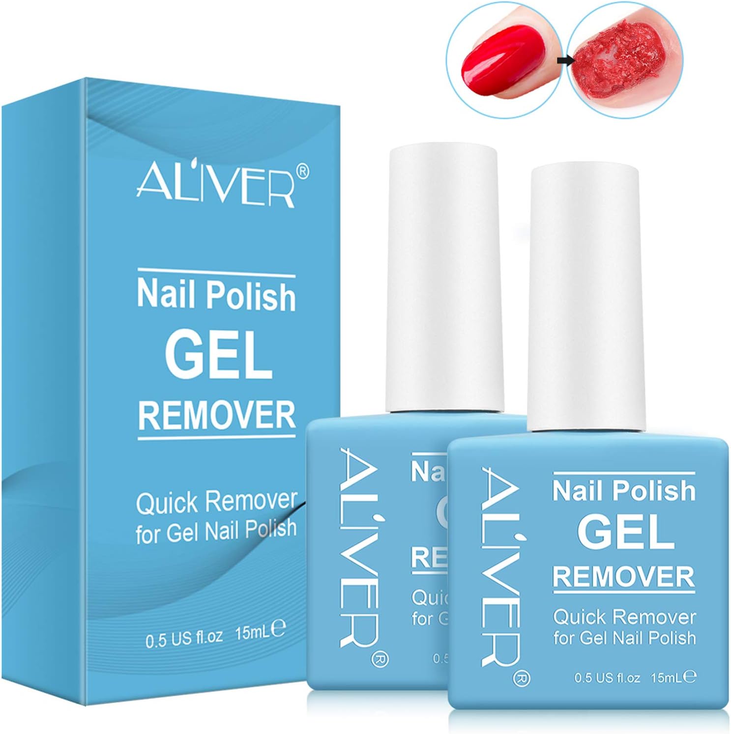 ALIVER Magic Nail Polish Remover, Professional Nail Gel Polish Remover, In 3 mins Quickly Removes Soak-Off Gel Polish UV Art Nail Lacquer, 2pack [Don't Hurt Nails]