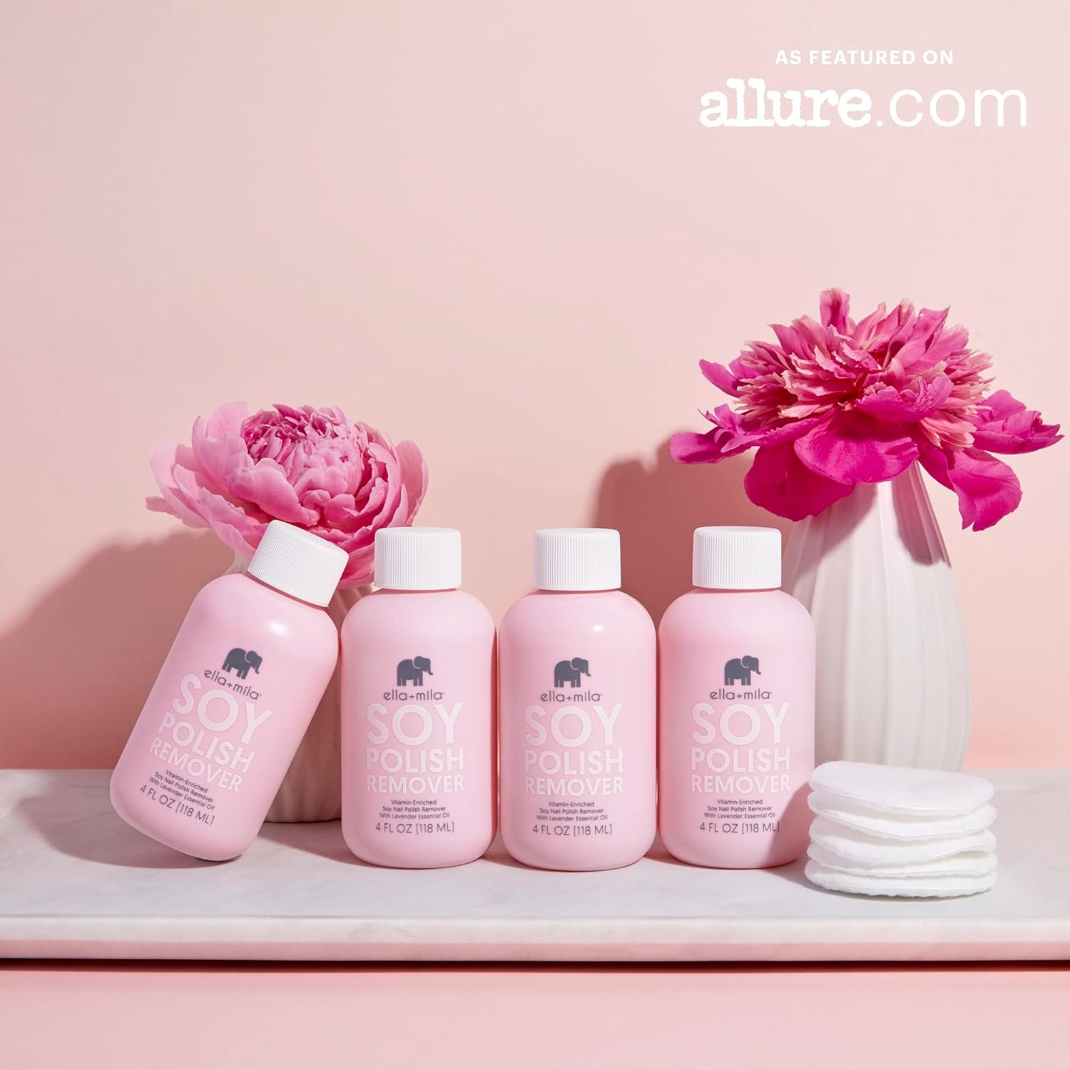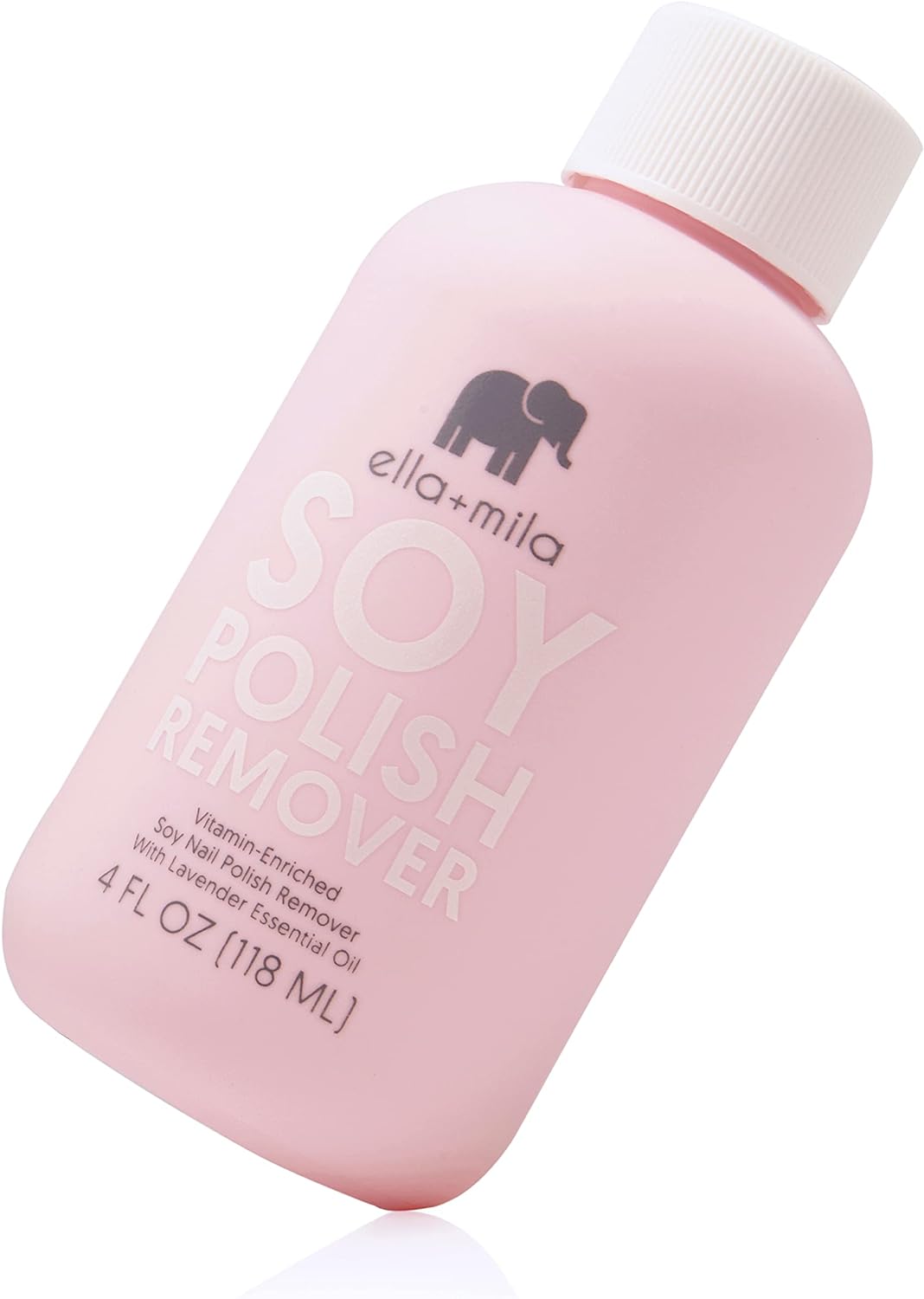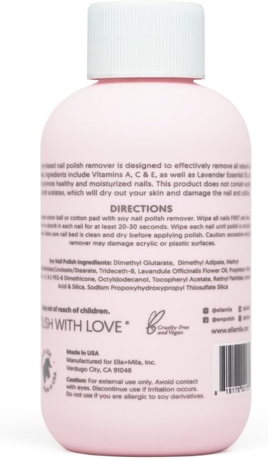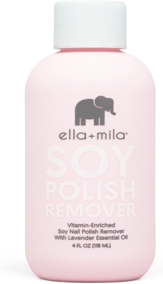 Ella+Mila Soy Nail Polish Remover - Acetone Free w/Lavender Essential Oil, Vitamin A, C, E Oil (4 ounces)