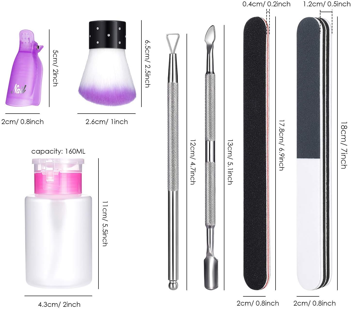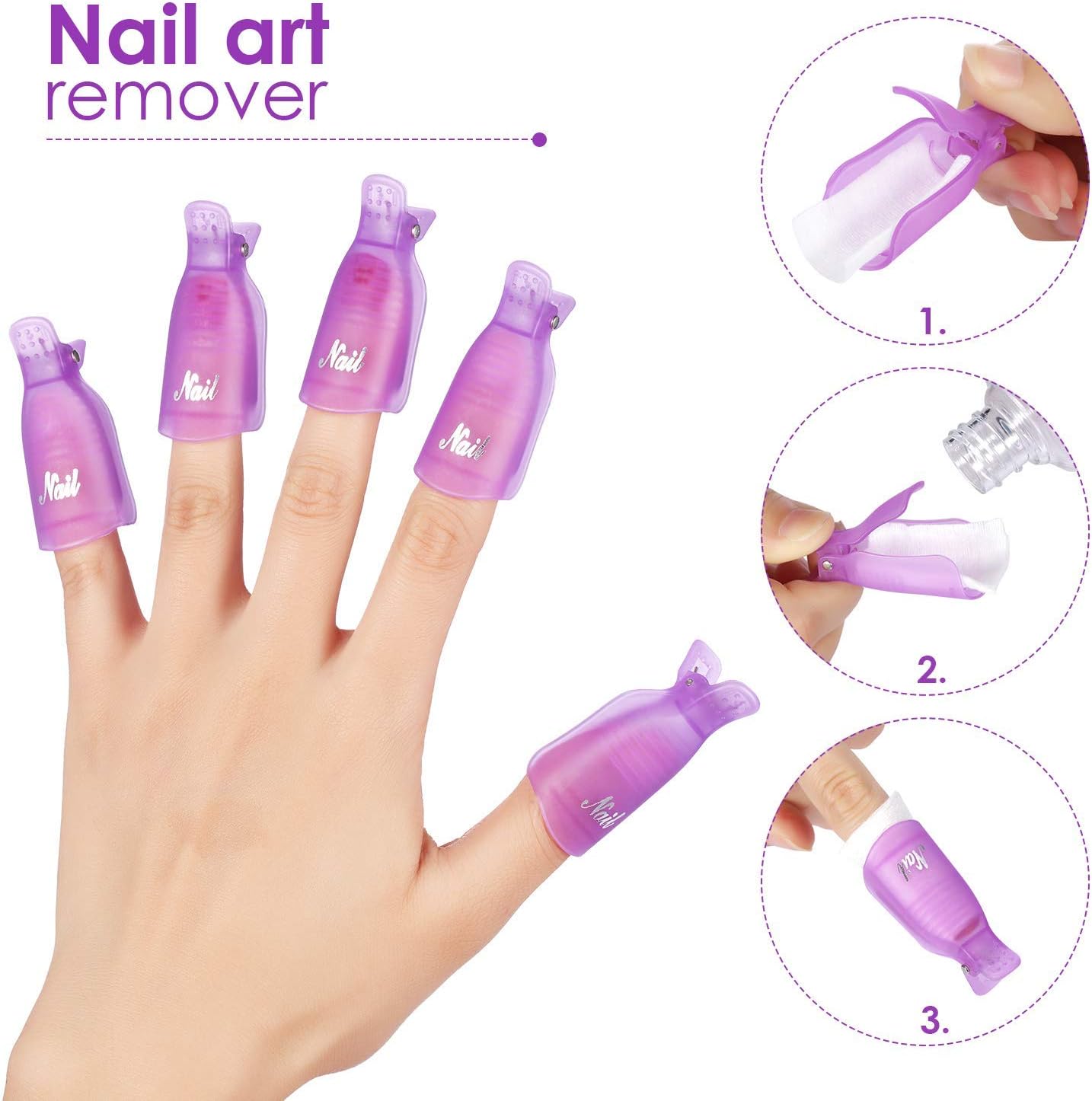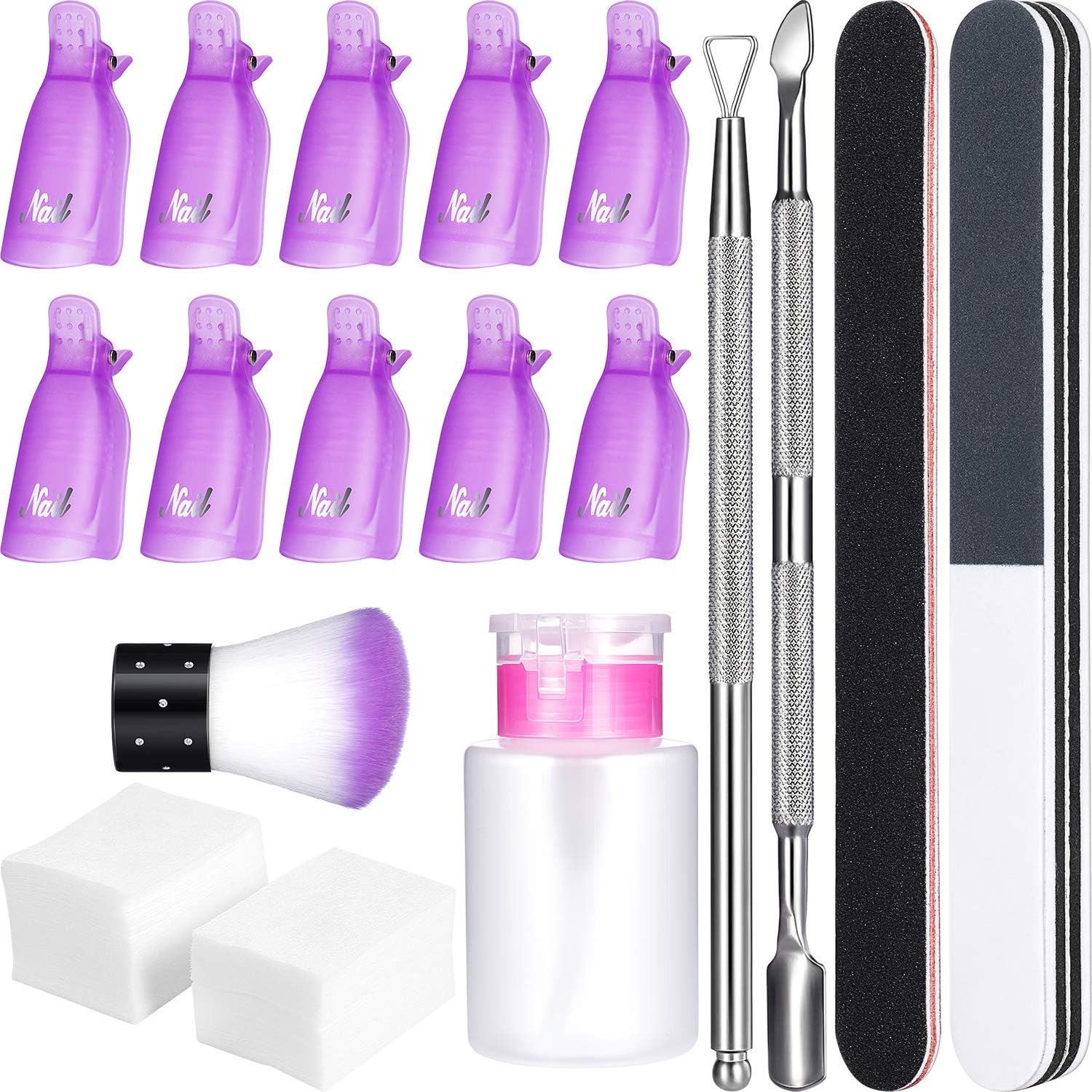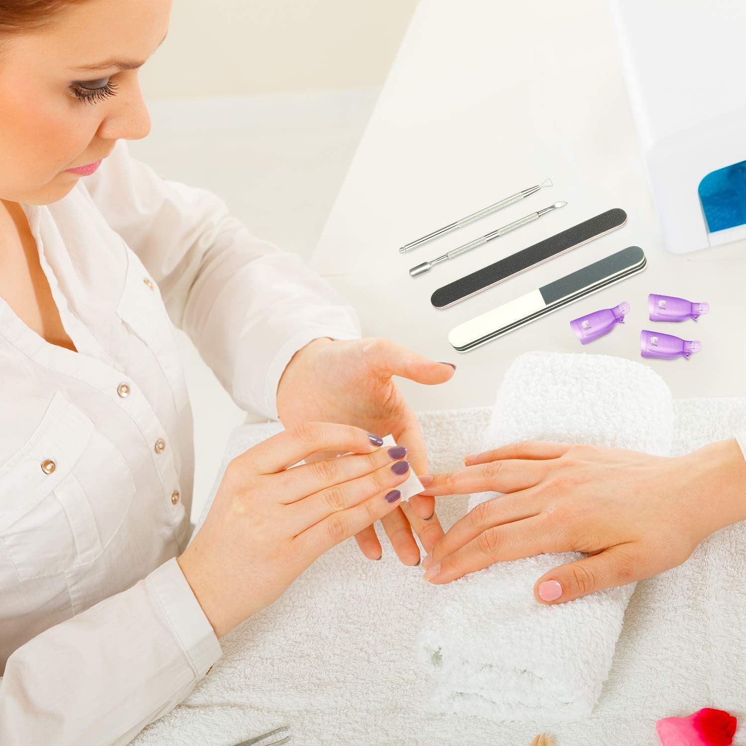 Gel Nail Polish Remover Tool - 200pcs Lint Free Nail Wipes 10pcs Nail Polish Remover Clips Pump Dispenser Cuticle Pusher Nail Brushes Nail File Nail Buffer Gel Polish Remover Tools Kit