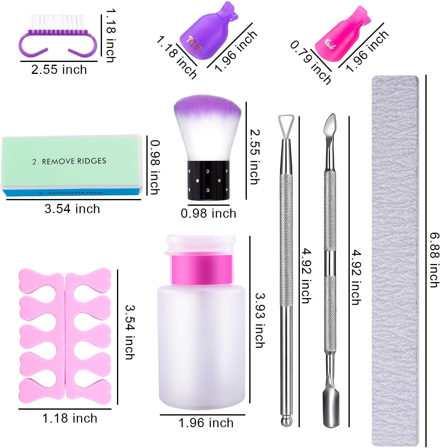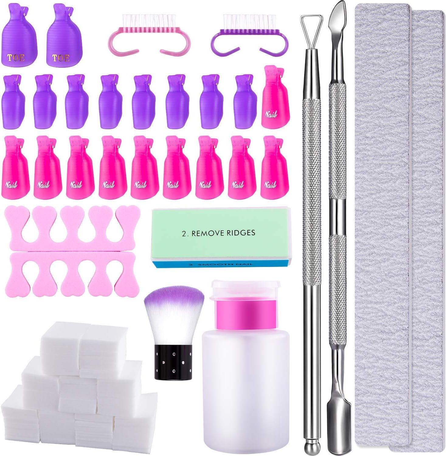 Gel Nail Polish Remover Tools 900 Pcs Cotton Pads, 20 Pcs Nail Clips, 3 Pcs Nail File, 3 Pcs Nail Brush, Triangle Cuticle Pusher and Cutter Set, Pump Bottle and 1 Pair Sponge Finger Separator