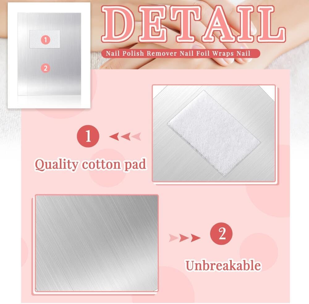 Great Soak-Off Effect : The nail foils wraps come with cotton pads,2*3cm cotton pads is lager enough and 9.5*7.5cm foils wraps is big enough for both fingers and toes,they hold nail polish remover well for great soak off effect and gel polish removal