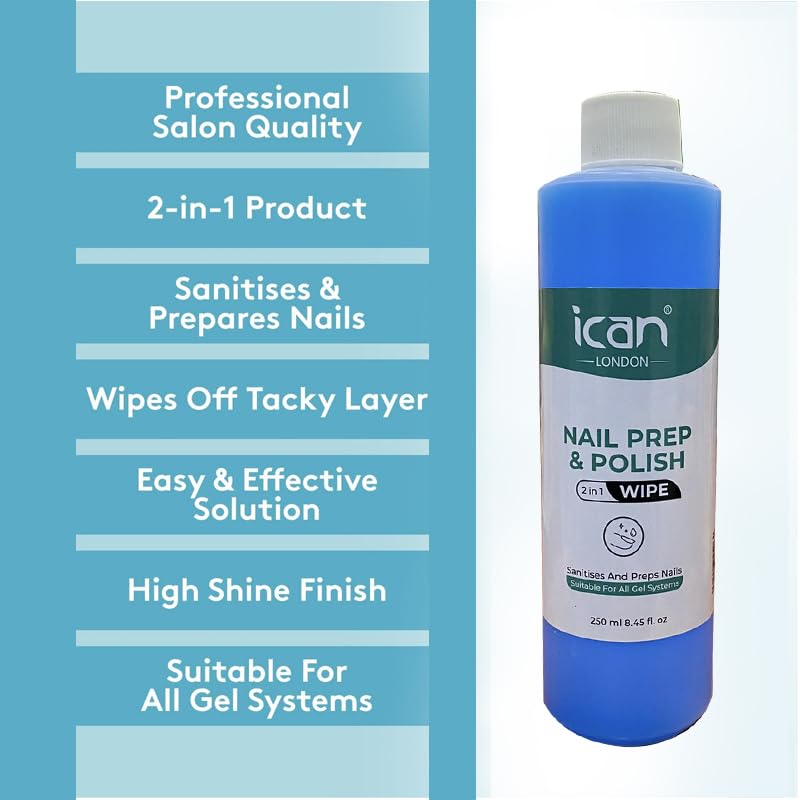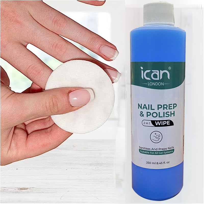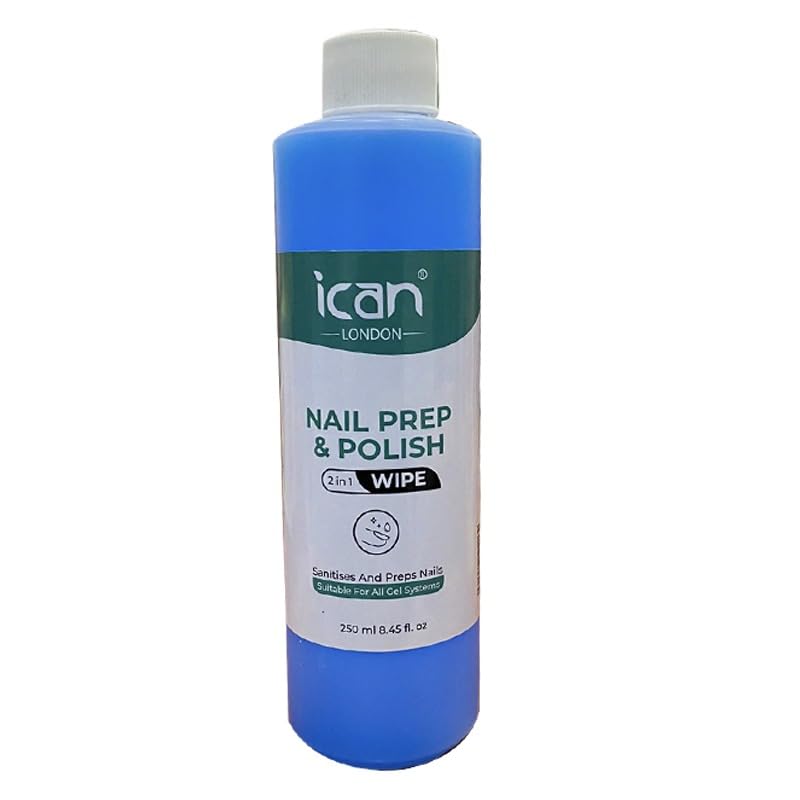ican Nail Prep & Polish 2 in 1 Wipe Gel Polish Residue Cleaner Multi-Purpose for Sanitiser For Nail Care 250ml