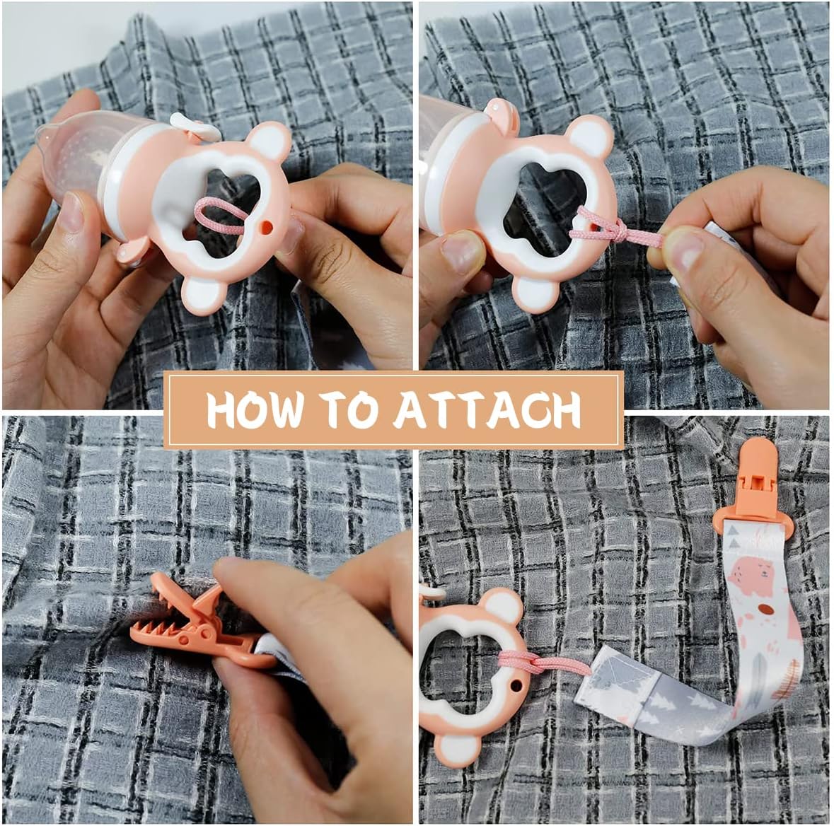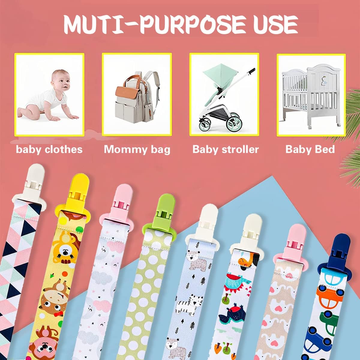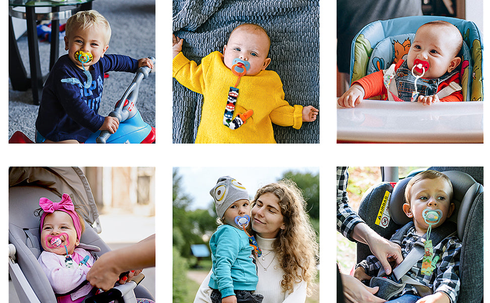 - 【Universal Clip】 Pacifier clips are used for strollers, teethers, burp cloths, teething rings and toys, baby blankets, and drool bibs. Our pacifier clips will keep your baby's accessories within reach.