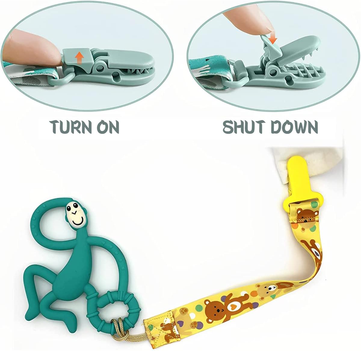 - 【Easy to Use】Simply attach it to baby's clothes, bags, drool bibs, or blankets, or hang it on your stroller. This can prevent pacifiers, teethers, and small toys from falling, soiling, or losing to keep cleaning.