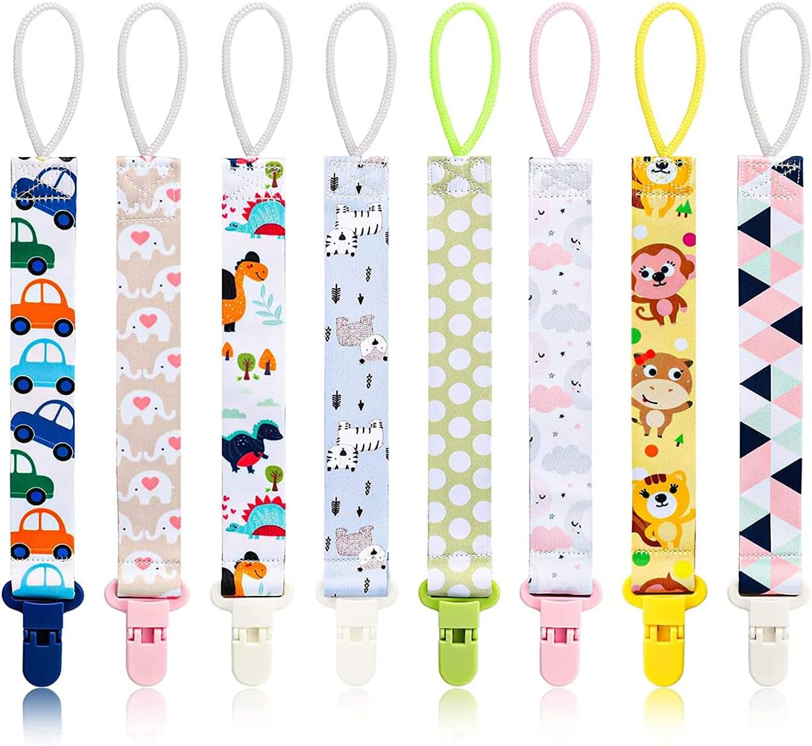 IBAMA 8 Pack Baby Pacifier Clips Anti-lost clip Anti-drop Chain Universal Pacifiers Teether Holder and Leash for Baby Boys and Girls Various Patterns Unisex Baby Shower Birthday Christmas Gift