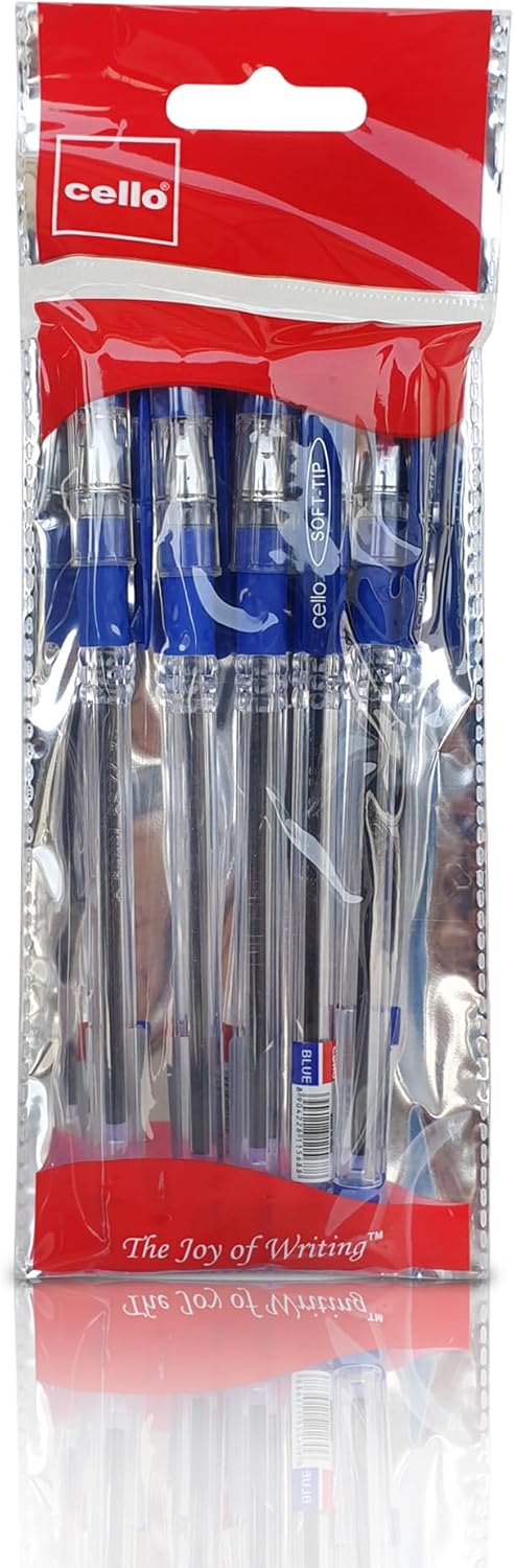 Cello Soft tip Ball Pen 0.7mm 5Pcs Blue |Ball Pens Blue| Ball Pens Set for Students | Pens for Office Use | Ball Pens for Writing Pens | Best pen for Exam