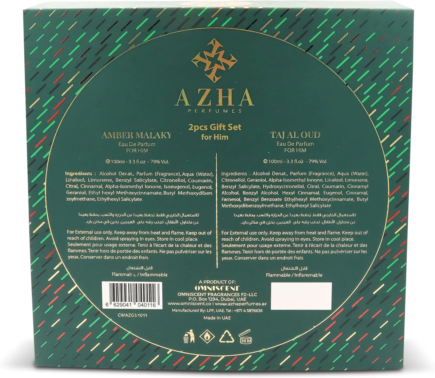 Azha Perfumes - 2Pc Gift Set Amber Malaky EDP 100 ml + Taj Al Oud EDP 100 ml for Men