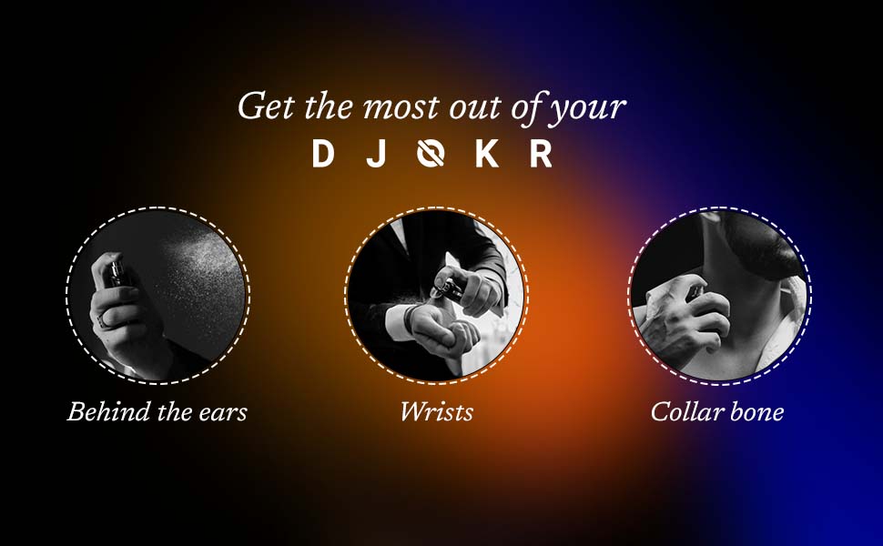 𝐒𝐏𝐑𝐀𝐘 𝐀𝐓 𝐏𝐔𝐋𝐒𝐄 𝐏𝐎𝐈𝐍𝐓𝐒 :-One of the unique propositions of DJOKR perfumes is that they have been designed specifically to nurture its alluring and aromatic tones, meant for spraying at the pulse points. A simple dab on the key points is enough for effect to set in.