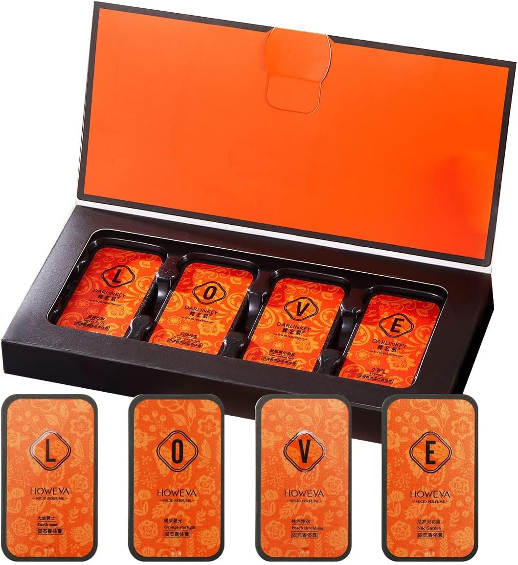 Solid Perfume, 4Pcs Solid Cologne Perfume, Fresh Floral and Fruity Scent,Floral Perfume,Solid Perfume Set, Long Lasting Fragrance, Fits In Your Purse or Travel Bag(0.35oz/Box)