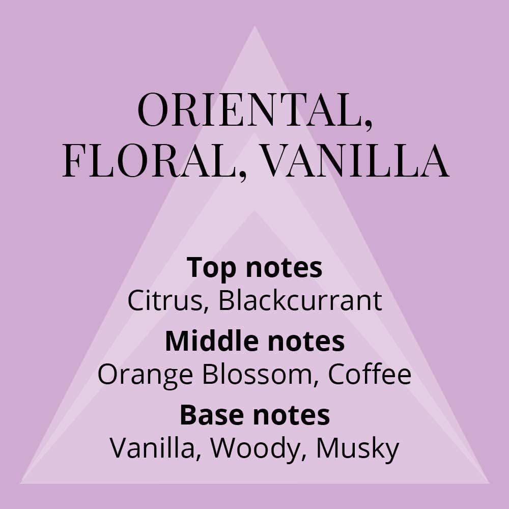 AMBER FLORAL SCENT. This fragrance opens with citrus and blackcurrant. The heart of jasmine, violet, and rose dries down to a base of patchouli, oakmoss, and amber.
