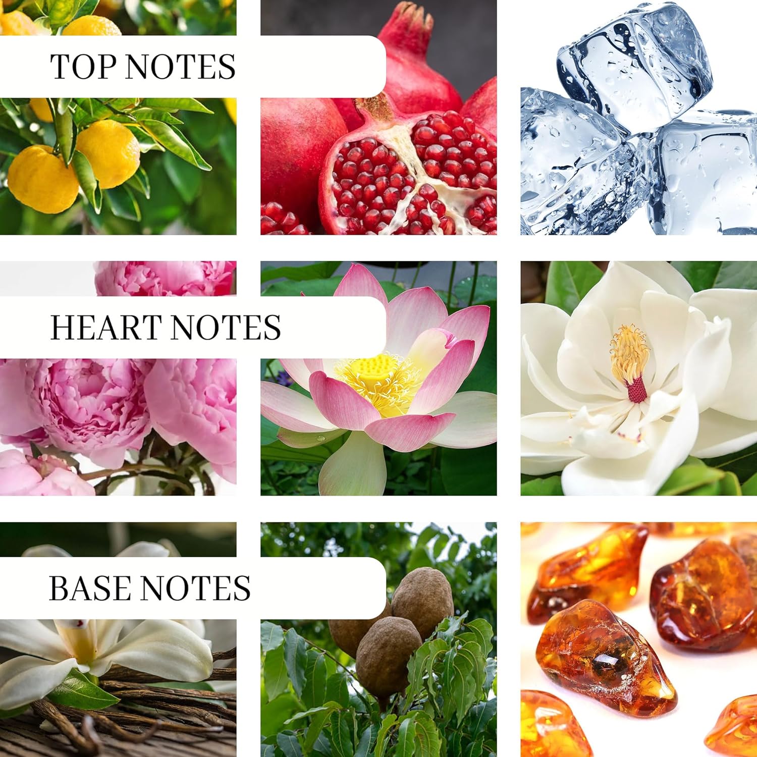 Top Notes: Yuzu, Pomegranate, and Ice.